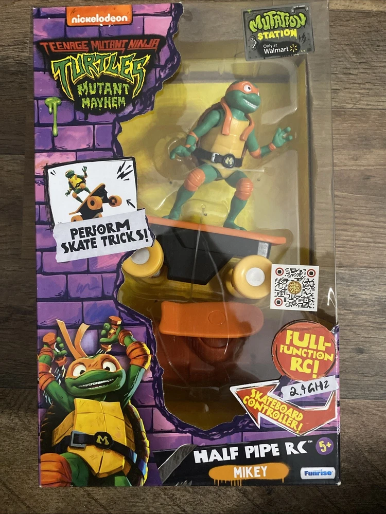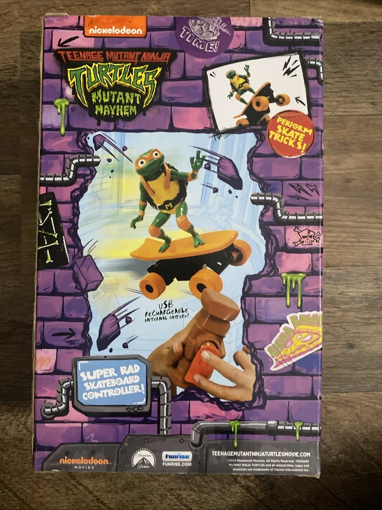 Get ready for some serious fun with the Teenage Mutant Ninja Turtles Mayhem MIKEY Half Pipe RC Skateboard. This action figure set includes Michaelangelo, a remote control, and a skateboard. The set is brand new in its original box, making it the perfect addition to any TMNT collection. With a length of 3.75", a height of 10.5", and a width of 6.5", this set is perfect for kids aged 5-7 years old. The skateboard features an RC that allows you to control Mikey's movements, adding an extra level of excitement to playtime. This set is a great way to bring the fun of the Teenage Mutant Ninja Turtles to life, and it's sure to provide hours of entertainment.