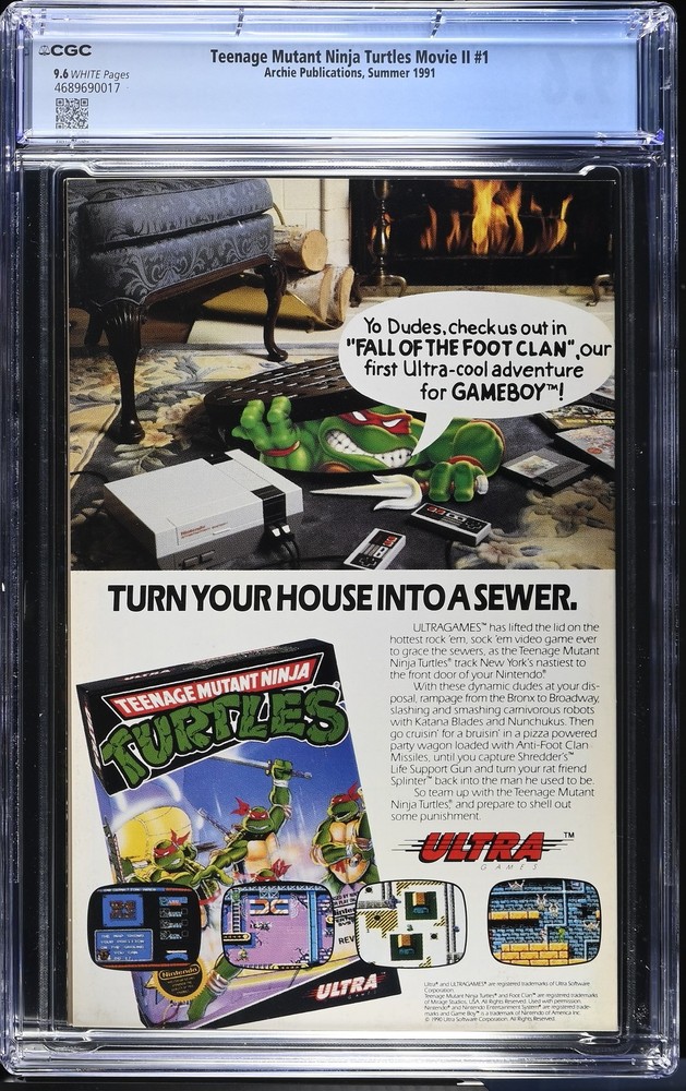 Welcome comic book community to the Destroyer of Worlds Comics store and our listing for Teenage Mutant Ninja Turtles Movie II 1 CGC 9.6 We are a small shop and our focus is to bring the best buying experience to our customers. Destroyer of Worlds Comics is an authorized CGC Dealer which grants us access to the CGC database for all graded book details which are included in every listing along with the hi resolution scans taken by CGC. We know that buying comics online can be stressful so we proactively eliminate the most common sources of stress by packing our comics professionally using BCW Graded Comic Bags and then placing them into sturdy 200 lb test boxes to withstand any mishandling while in transit with the carrier. When we receive an order it becomes top priority and your order is immediately pulled from inventory and packaged properly to arrive in your hands as quickly as possible. Our goal is for you to not worry about your order arriving late or guessing when it will be shipped. When you buy from our store you will also receive hassle free 30 day returns and we will cover the shipping cost back to us if you decide to make a return. We hope our commitment to protecting comics and servicing our customers provides a trustworthy and pleasant experience and thank you for considering us. The images in the listing are the actual item you will receive after purchasing. If you have any questions prior to making a decision please reach out and we will answer promptly. We are located in southern Florida not far from CGC and add new listings regularly so please take a look at our other listings if you are looking for CGC graded books and favorite us as a seller if you enjoyed buying from us. CGC Certification Info Title: Teenage Mutant Ninja Turtles Movie II Issue: 1 Grading Company: CGC Grade: 9.6 CGC Cert #: 4689690017 Page Quality: WHITE Issue Date: Summer 1991 Issue Year: 1991 Publisher: Archie Publications Grade Category: Modern Total Graded By CGC: In 9.6: 12 Grader Notes: ['crease right bottom of front cover'] CGC Census Report CGC Database Query Time: 2026-02-18 16:36:13 Mint 10.0: 0 Mint 9.9: 0 Near Mint/Mint 9.8: 20 Near Mint+ 9.6: 12 Near Mint 9.4: 9 Near Mint- 9.2: 10 Very Fine/Near Mint 9.0: 4 Very Fine+ 8.5: 1 Very Fine 8.0: 3 Very Fine- 7.5: 0 Fine/Very Fine 7.0: 0 Fine+ 6.5: 0 Fine 6.0: 1 Fine- 5.5: 1 Very Good/Fine 5.0: 0 Very Good+ 4.5: 0 Very Good 4.0: 1 Very Good- 3.5: 0 Good/Very Good 3.0: 0 Good+ 2.5: 0 Good 2.0: 0 Good- 1.8: 0 Fair/Good 1.5: 0 Fair 1.0: 0 Poor 0.5: 0 Case Condition We understand every collector has a unique set of standards when it comes to condition of the case and we often receive entire submissions with defects therefore we make every effort to note those conditions in the listing since they are often not visible in the scanned images. Nearly every case we receive from CGC has at least one of the following defects: grade on label not centered, label mounted crooked, newton rings, scuffing, scratches, case stress from the sealing process or inner well movement. To keep you informed before making a purchase decision we note major defects like cracks, newton rings, heavy scratches, and major scuffing in the listing but do not list the minor ones. If there are any flaws you dislike in particular please message us and we would be happy to review any of our listings and get back with you with every flaw we can find on the case. In the event the case arrives and is not to your satisfaction please reach out and we will offer to replace it if we have one available in better condition or a return can be opened at no cost within 30 days to receive a full refund. Pricing All fixed price listings are firm. We price our books at fair value according to recently sold listings but do realize prices fluctuate frequently when auctions are involved so we sometimes create auction listings for a chance at reduced prices for those who enjoy the thrill of the hunt. We also regularly run promotional coupon codes for volume discounts on orders of multiple fixed price listings so be sure to add listings to your watchlist and check back frequently. Shipping Policy Destroyer of Worlds Comics typically ships your items same day or next business day after payment is made. CGC graded comics are wrapped both vertically and horizontally in 5/16 inch bubble wrap and then placed into a 200 lb test corrugated box for protection. Ungraded comics are shipped in Gemini Comic Mailers. Combined shipping is offered for both domestic and international buyers. Please note for international orders any additional import fees duties taxes or customs charges are the sole responsibility of the buyer. These charges are determined by your country's customs office and we unfortunately have no influence over the amount charged or the duration of the assessment process due to the customs forms being automated. Please be aware that customs procedures and policies vary from country to country. If you have any concerns or questions regarding import fees duties or taxes we recommend contacting your local customs office before making a purchase. Return Policy Free returns available on all CGC graded books within 30 days of purchase.