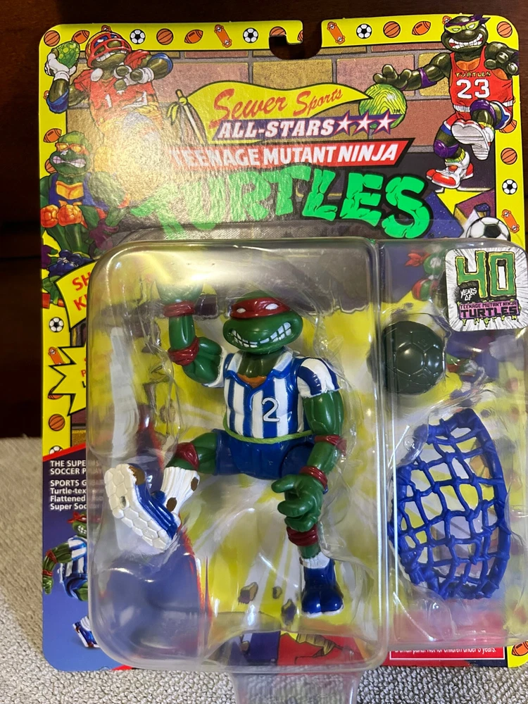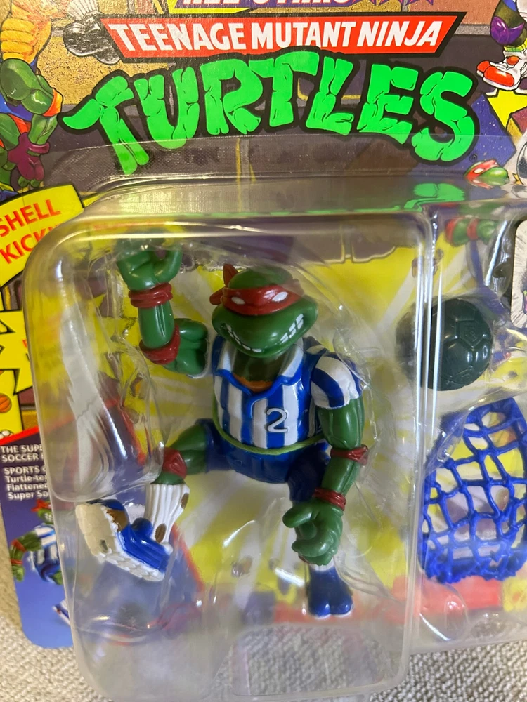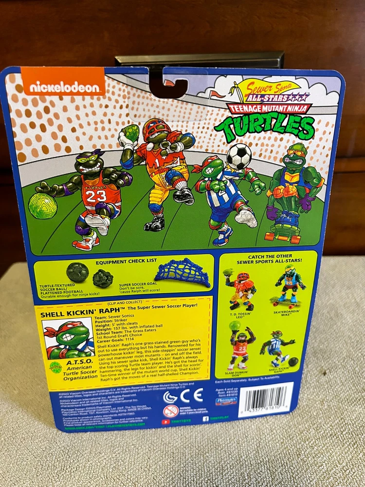 This action figure is a must-have for any Teenage Mutant Ninja Turtles fan! It features Shell Kickin Raph, one of the beloved characters from the TMNT franchise, in a pose-able position and equipped with plastic weapons. The figure also includes accessories and joints, making it perfect for imaginative play. With its multicolor design and licensed reproduction from Playmates Toys, this action figure is a great addition to any collection. It is perfect for children aged 4+ and adults alike who enjoy soccer and the Sewer Sports All-Stars theme. Don't miss out on the chance to own this unique piece of TMNT memorabilia! Thanks for your time!