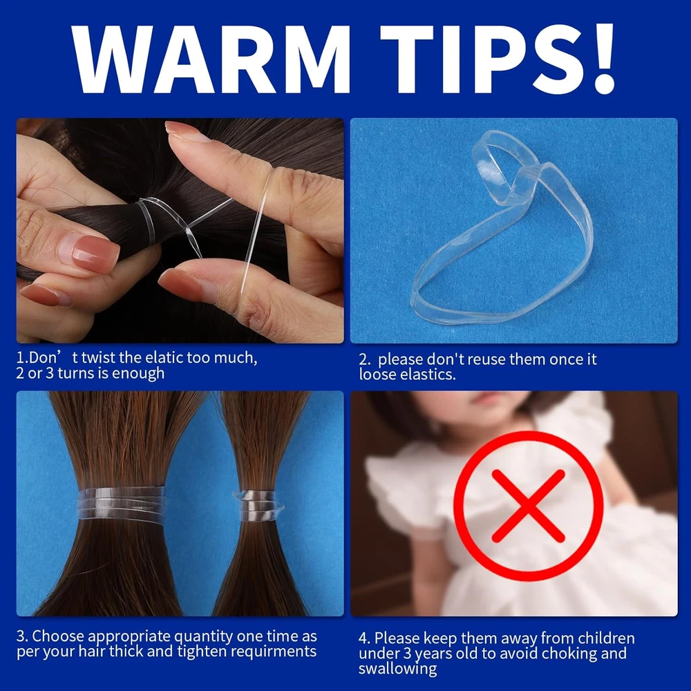 Elastic Hair Bands: Suitable for different kind of hairstyles and hair length, no matter ponytail, curls, hairdos or babies fine hair, good for small dreadlocks, hair design, hair braiding, pony tails, wedding hairstyle, or DIY more charming hairstyle Strong And Stretchy: The clear eastic hair bands are not so thin that they break when you try to stretch, but they are not so thick that you can't stretch them properly. Also, they slide off the braids when grabbed and pull off clean Large Volume: 2000 pieces clear rubber elastic hair bands, enough for braiding different hairstyles in the long term. You can keep a couple dozen in your purse, another couple dozen in your gym bag, some in your car Easy To Storage: Stored in our own plastic round box which is convenient for store and pick, keep the hair ties clean and tidy so you didn't have to put them in a baggie Multipurpose: These clear elastic bands are suitable for both men and women, baby, and child, ideal for long, short, curly, ponytails, braids, everyday hairstyles, etc., and can also be used in office or industrial areas Warm Tip: You can choose the right amount at a time according to your hair's thickness and tightness requirements. The clear rubber bands are disposable, if you reuse them, they will get bigger each time, please don't reuse them Product Description CLEAR ELASTIC HAIR BANDS 2000 pieces clear rubber elastic hair bands, enough for braiding different hairstyles in the long term. Good elastic that easy to stretch and not easy to break, fit for kinds of hairstyles and different hair lengths. Stored in a plastic round box, convenient to store and pick. 2 mm (W) x 30 mm (L). These elastic hair bands are made of high quality TPU, suitable for different kind of hairstyles and hair length, no matter ponytail, curls, hairdos or babies fine hair, good for small dreadlocks, hair design, hair braiding, pony tails, wedding hairstyle, or DIY more charming hairstyle. These hair ties are gentle on the hair and don't cause pain or pulling when removing them, they are suitable for daily use. Warm note: It's better to use 2 or more hair bands at the same time if you are adults or have thick and long hair. Disposable clear rubber bands, please don't reuse them. These elastic bands are suitable for all kinds person, man, woman, baby, and child, ideal for long or short hair, curls, ponytail, braiding, daily hairdos and so on, also can be applied for office or industrial. Please keep them away from children under 3 years old to avoid choking and swallowing. These clear elastic hair bands are stretchy, making them suitable for various hairstyles and hair types, including thick hair, fine hair, and even for use on pets, tying shirts or using them under wigs. They withstand daily wear and stay in place without snapping easily. The Hair elastics are effortless to wear on and take off your hairs; no pain and snag-free when pulling off, easy to wear securely for a rigorous workout and fit well underneath your hair tie. these hair bands for various purposes beyond hairstyling, such as grooming pets or tying shirts. Easy to stretch with good elastic. These clear elastic hair bands are stretchy, making them suitable for various hairstyles and hair types, including toddler hair and thick adult hair. They hold hair in place throughout the day without breaking easily. Less prone to snapping during use.