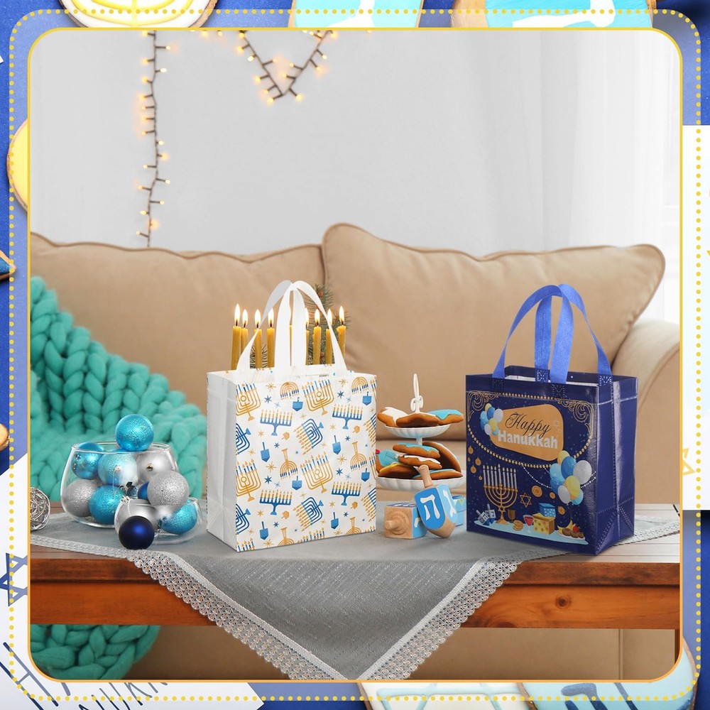Tegeme 24 Pcs Hanukkah Gift Bags Bulk Chanukah Reusable Large Tote with Handles