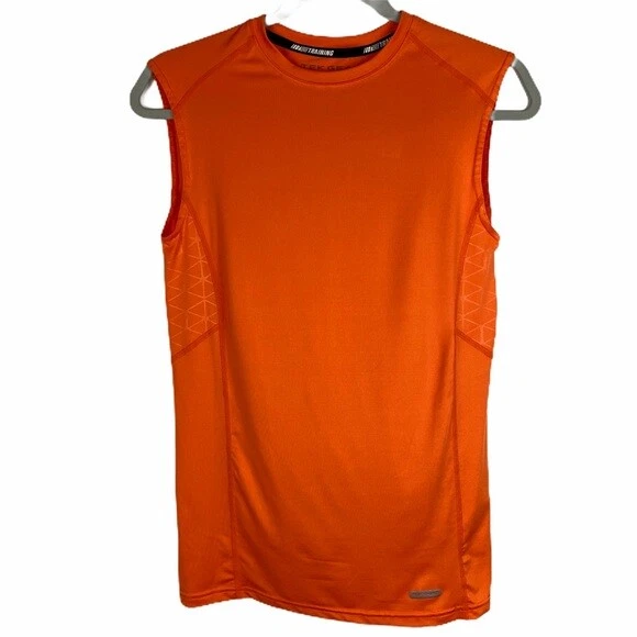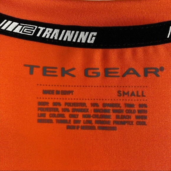 Tek Gear Performance Training Men's Small Orange Dry Tek Muscle Tank. Crew neckline and sleeveless. Moisture-wicking fabric keeps you cool & dry. Bulk up your fitness gear with this men's Tek Gear muscle tee. Great condition. Smoke free home. 90% Polyester / 10% Spandex Size: Small Measurements are approximate Pit to Pit: 17" Length: 26.5" #1409