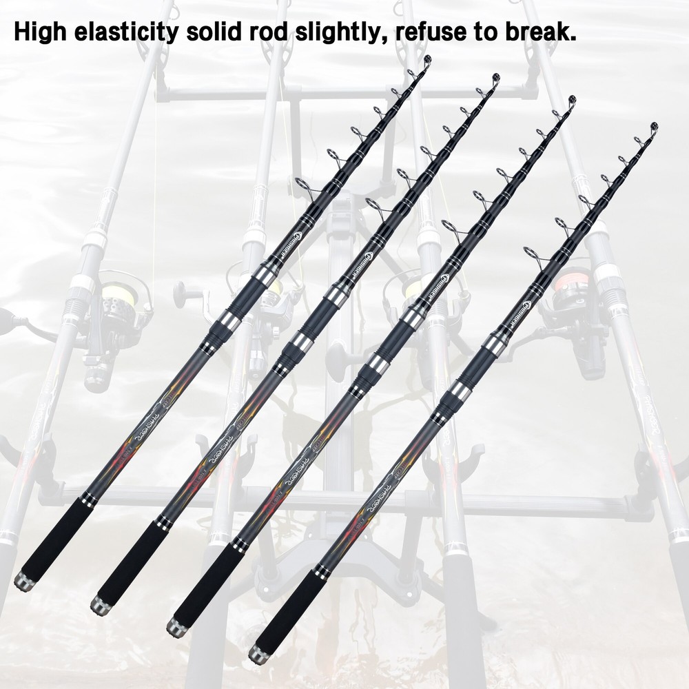Telescopic Carp Fishing Rod 3.5lbs 3.0/3.3/3.6/3.9/4.2m 1.Made of 30T carbon fiber cloth, the waist is strong, the fishing weight test value is as high as 6kg; 2.High elasticity solid rod slightly, refuse to break; 3.The wheel seat distance is 50cm and 160g is easy to cast; 4.Top ring uses a thickened magnetic ring, which is super wear-resistant and smooth; the largest guide ring is 25#, and the wire exits smoothly; 5.Special part is made of 3K carbon cloth, which is durable and beautiful; 6.The inner diameter is matte bare rod, which is lighter; 7.Each guide ring uses an anti-collision O-ring to prevent bumps and damage; 8.Equipped with a U-shaped hook, which is convenient for hanging fish hooks; 9.Nylon roll seat, lengthened HOOD, non-slip, more comfortable grip; 10.High hardness EVA grip, wear-resistant, non-slip; 11.Exquisite gun-color electroplating tail piece, wear-resistant and anti-collision; 12.High-strength PVC pipe packaging and transportation, please rest assured to buy.
