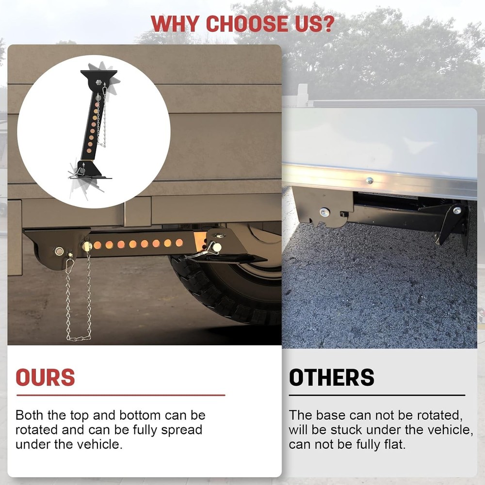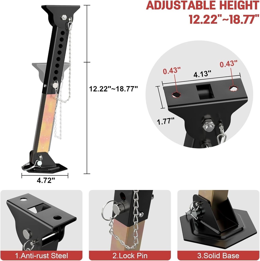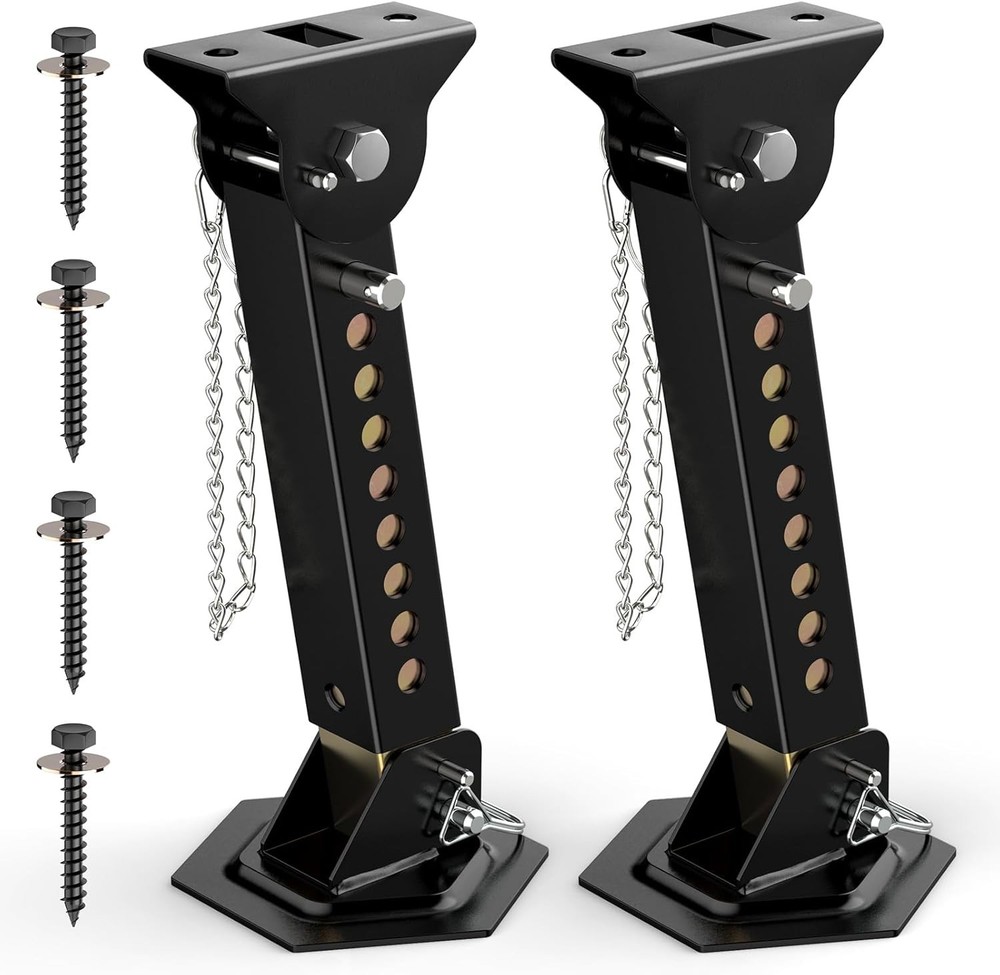 Telescoping RV Camper Accessories - 2 Pack Trailer Stabilizer Jacks, Adjustable 12" to 18", Slide Out Supports 1000 Lbs Capacity Each Vehicle Service Type Cargo Trailers, Pop-up Campers, Truck, Utility Trailers Material Alloy Steel Load Capacity 1000 Pounds Maximum Lifting Height 18.77 Inches Brand AUH About this item Upgraded Telescoping Jack: AUH telescoping folding trailer stabilizer jacks provide support for the slide rail when extended, which can effectively solve the problem of sagging and bending of the slide rail and help improve the stability of utility trailer Durable Material: The camper stabilizer jacks are constructed of heavy-duty steel and zinc powder-coating finish, which are anti-rust and anti-corrosion,designed for outdoor activities and providing maximum strength and longevity Adjustable Height: Each trailer leveling jack can be adjusted from 12" to 18" and its load capacity is up to 1,000 lbs; Plain tops of stabilizer jacks fit most slide-out frames and utility trailers Easy & Effortless Installation: Our trailer jack stand comes with all installation necessary parts you need. The trailer jack can be direct bolt on your trailers with screws. No need to worry about it! Both the top and bottom of folding trailer jacks can be rotated and fully spread under the trailer Reliable After-sale Service: If our stabilizer jacks for travel trailer ever fail on using, serving its purpose or its parts are missing, come and ask our professional customer service for a replacement; AUH is committed to making products and providing delighting service to each customer . We offer FREE shipping on all orders! . We ship within Five business days of payment, usually sooner. . We use a selection of shipping services such as UPS, FedEx, USPS etc. . We only ship to the lower 48 states, no APO/FPO addresses or PO Boxes allowed. . Local pickups and combined shipping options are not provided at this time. . Your satisfaction is a wonderful reward for our efforts. Please assist us by leaving a positive review if you feel pleased with our service. . In the event that you encounter any difficulties related to your order, please do not hesitate to reach out to us directly through the Messaging system on the Ebay platform. Kindly consider opening a COMPLAINT or a RETURN REQUEST as a last resort, only after all other possible measures have been attempted and we have been unable to provide you with assistance. . We will get in touch with you within 24 hours and make every effort to ensure your satisfaction. . Please rest assured of our service quality.