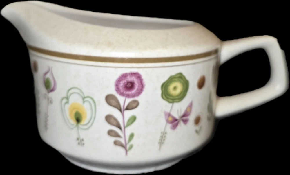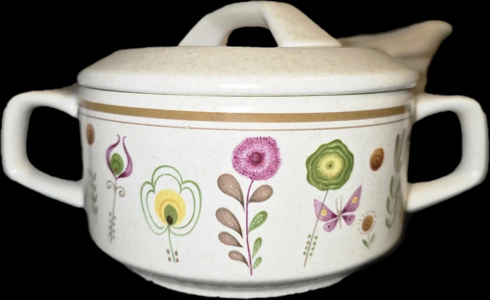 This is a 3 piece set Lenox Sprite Temperware. It appears to be a creamer or gravy serving bowl and a sugar bowl w a lid included. All three are in excellent condition, with no chips or cracks! Temperware is unique as it is made to go from oven to freezer or cold to hot without cracking or breaking! Would be a great addition to any kitchen!