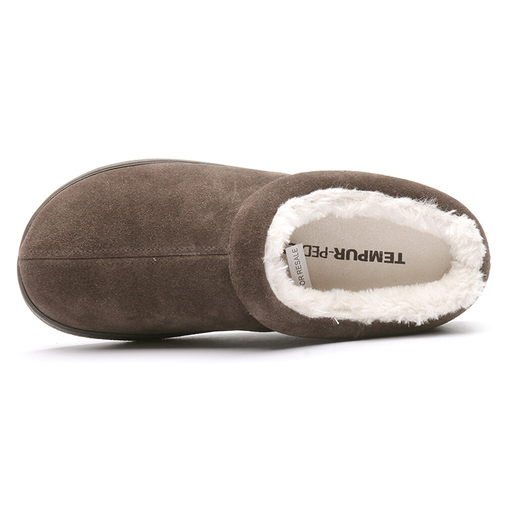 Emmalee Scuff Slippers Product Details Suede upper Fleece lining Tempur Cloud Foam Footbed Clog open back slipper with genuine suede upper that has a padded collar detail. The lining is a soft cozy fleece that is breathable, the Tempur Cloud foam footbed provides support where you foot needs it, the indoor and outdoor sole is flexible and durable. Additional Details Color: Brown Occasion: Casual Gender: Womens Age: Adult Brand: