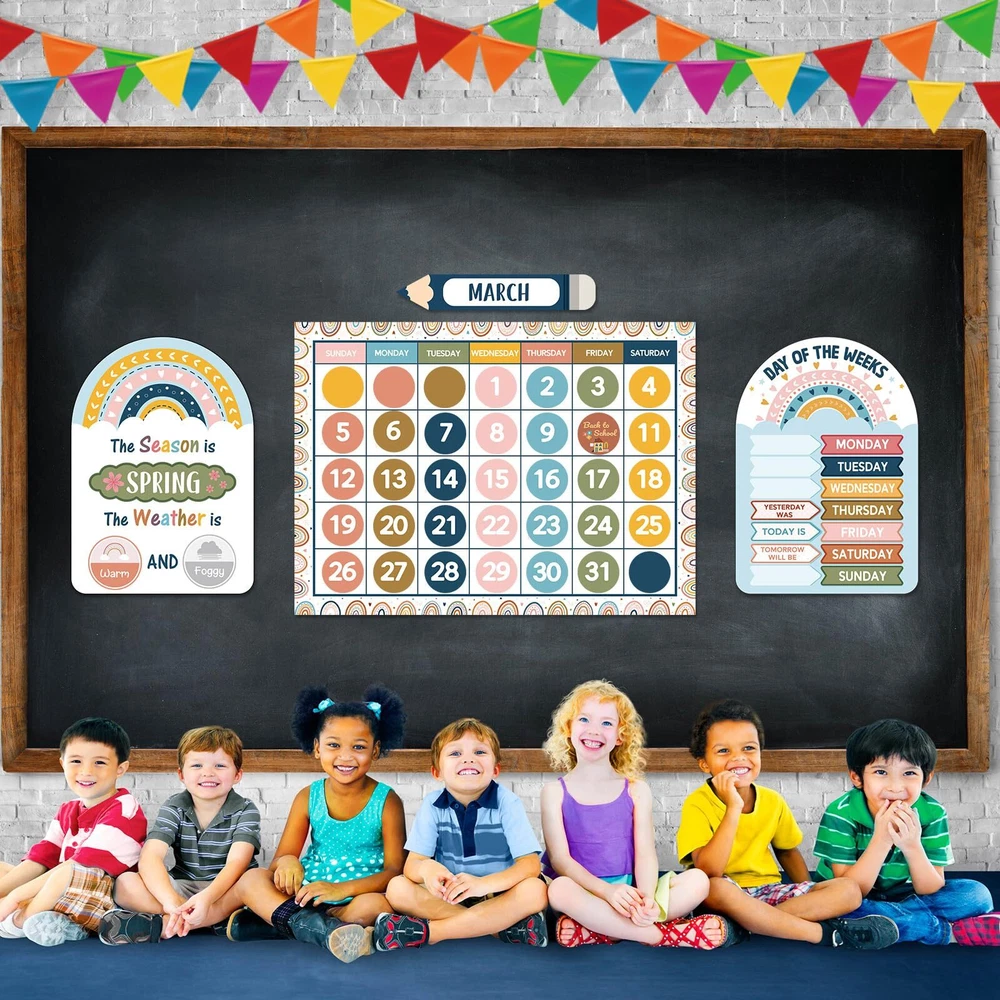 Features: Quality material: These colorful calendars for the classroom are made of quality cardstock, covered with quality PET film for added durability, waterproof, tear-resistant and reusable, nice printing technology makes every card is vibrant and colorfast, please rest assured to buy. Flexible design: Full of innocence with bright colors and cartoon patterns, these bulletin board sets are very suitable for classroom decoration, libraries, learning centers, and after-school programs, come with round stickers, flexible design easy to change the date and weather. Specifications: Material: card stock Size: about 17 x 23 inch Quantity: 162 pieces Color: as shown in the picture Package includes: 1 x Calendar 31 x Number cover-ups 4 x Blank cover-ups 13 x Occasion cover-ups 12 x Monthly headers 1 x Season weather chart 1 x Days of the week 6 x Weather cover-ups 4 x Season cover-ups 9 x Decorative cover-ups 3 x Yesterday, today and tomorrow cover-ups 80 Pairs of round stickers (2 rolls) Note: Manual measurement, please allow little size errors. The words of the products are for decorative purposes only, not applied as a trademark. Package include: you will get 1 calendar, 1 season weather chart, 1 days of the week, 31 number cover ups, 4 season cover ups, 4 blank cover ups, 14 special occasion cover ups, 12 monthly headers, 11 weather cover ups, 3 yesterday, today and tomorrow cover ups; This calendar bulletin board set also includes 80 pairs of hook and loop, easy to change the date and weather Size Details: the calendar is about 17 x 23 inch in brights style calendar bulletin board set is ideal for decorating bulletin boards in the classroom or home as study or planning supplies Reliable material: these positive posters for the classroom are made of quality cardstock, covered with PET film for added durability, waterproof, tear-resistant and reusable, nice printing technology makes every card is vibrant and colorfast, and with no odd Wide applications: these colorful calendar boards are suitable for preschool, elementary, middle, high school, libraries, learning centers, they are a wonderful addition to classroom supplies Chic design: these calendar sets have various styles for you to choose, and a font design with bright colors, the vibrant design can fully attract the attention of students and help to increase their curiosity about the world, good helper for classroom decoration