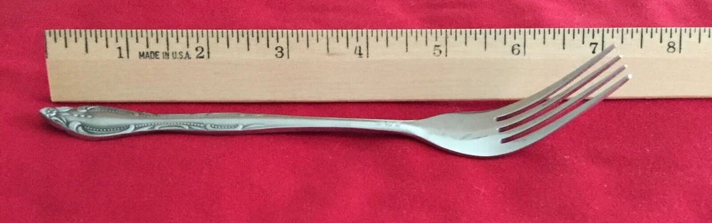 Manufacturer: Utica Pattern: UTI 30 - Beaded Edge - Floral Tip Type: Stainless Steel Piece: Dinner Fork Length: 7"