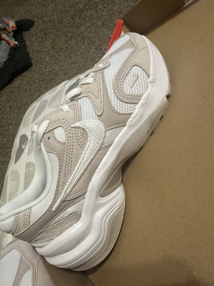 The product is a pair of Nike Al8 tennis shoes specifically designed for women in size US 6.5. The style code is FJ3794-001 and the shoes feature a platinum violet, metallic silver, and white color scheme. Made with a breathable mesh upper material, these athletic sneakers are part of the Nike Al8 product line and were released in 2024. The design incorporates the signature Nike style and is perfect for tennis players looking for comfortable and stylish footwear.