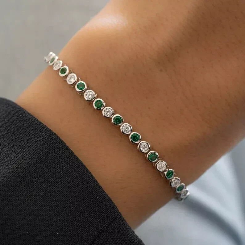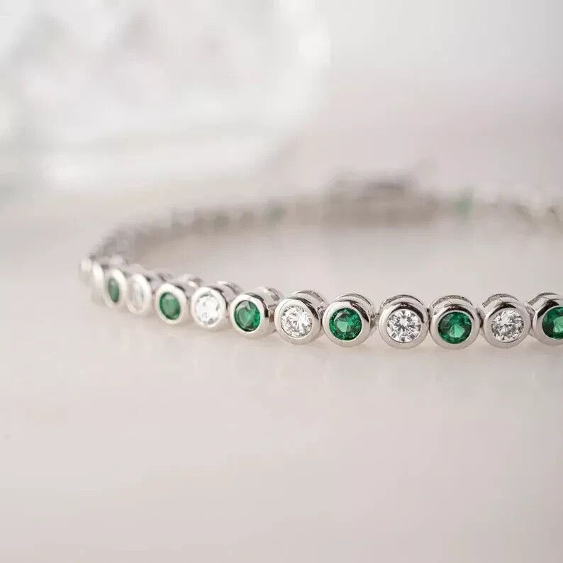 $ 24.294CT Amethyst & Australian Opal Inlay 925 Sterling Silver Tennis Bracelet OB1