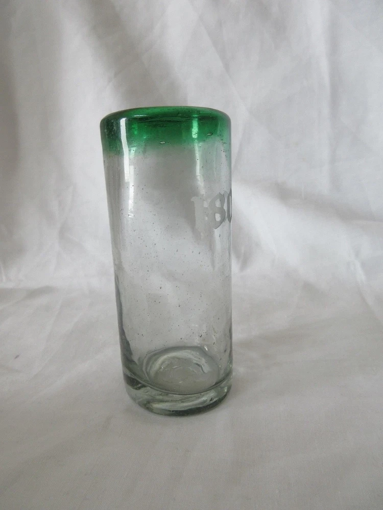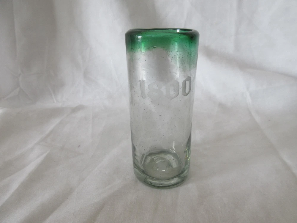 Tequila 1800 Hand Blown Green Rim Shot Glass. Estate sale item. In great used condition. Minor wear. no chips or cracks. Size: approx. 1 5/8" round diameter x 3.75" tall. Only ship to eBay/PayPal verified address within the United States. Payment due within 4 days. Item location: Alameda, California, United States Shipping to: United States