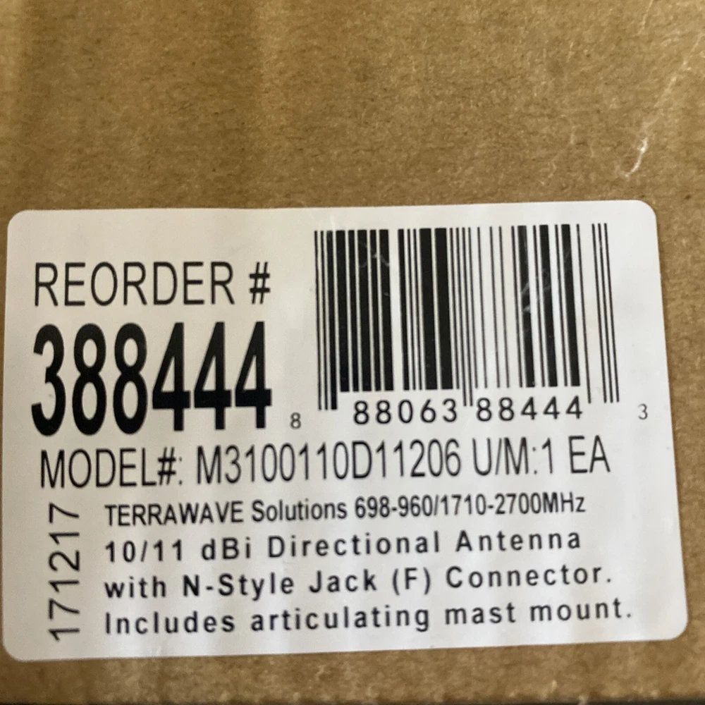 New old stock terrawave directional yagi antenna new in box with articulating mast mount and u-bolt. N female connector. These are often used for cellular reception