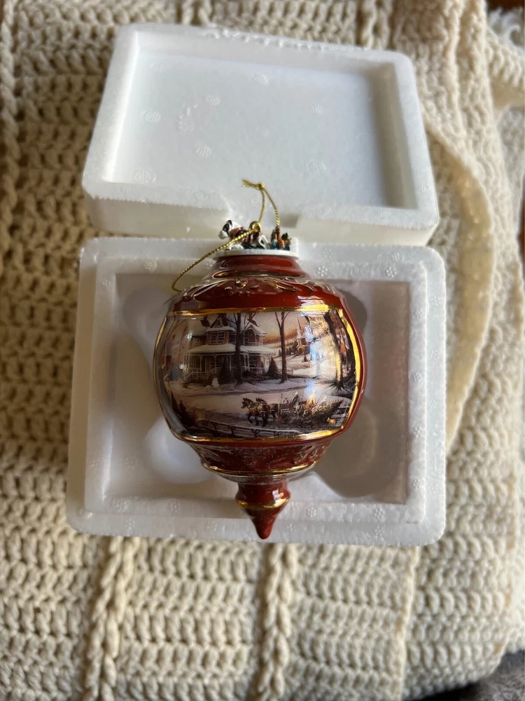 Terry Redlin ornament with his painting "House Call" featured. The Hadley Collection Heirloom ornament. Purchased in his hometown of Watertown, SD. Includes foam box. "House Call" 2022325