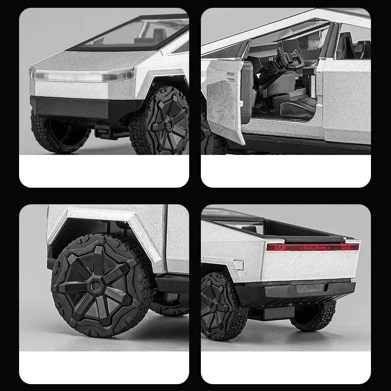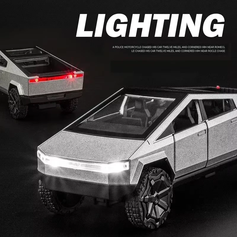 Bring the future home with this 1:36 scale Tesla Cybertruck diecast model! Featuring realistic alloy construction, sound, and light effects, this toy car makes an exciting gift for kids or collectors. Its durable design and intricate detailing capture the spirit of the iconic Cybertruck. A perfect Christmas or birthday present for boys who love vehicles or tech-inspired toys. Great for play or display, this pickup truck model will electrify any collection! Shipping: Free shipping; ships in 3 business days. Returns: 30-day return policy; original condition required