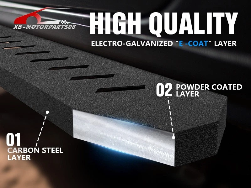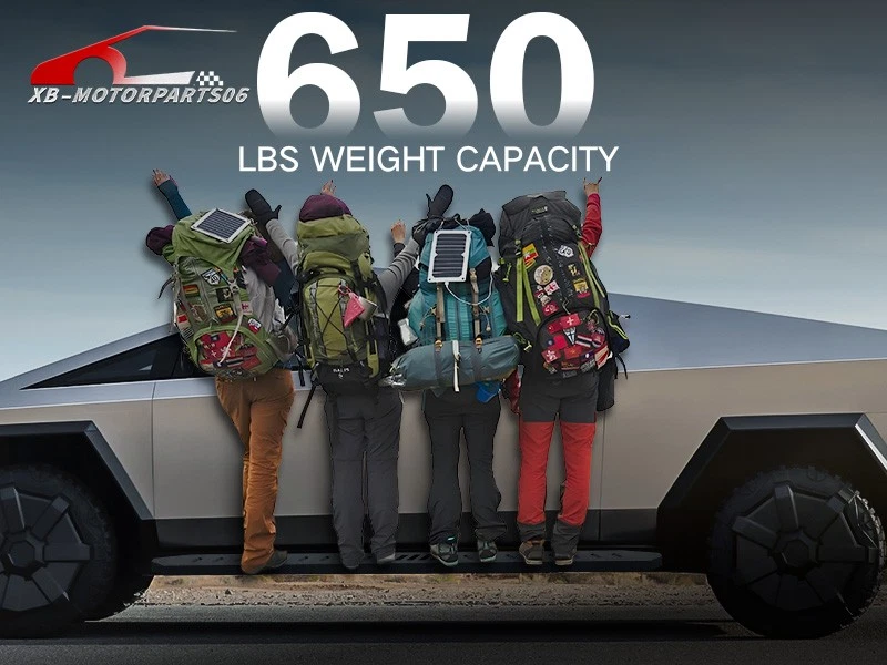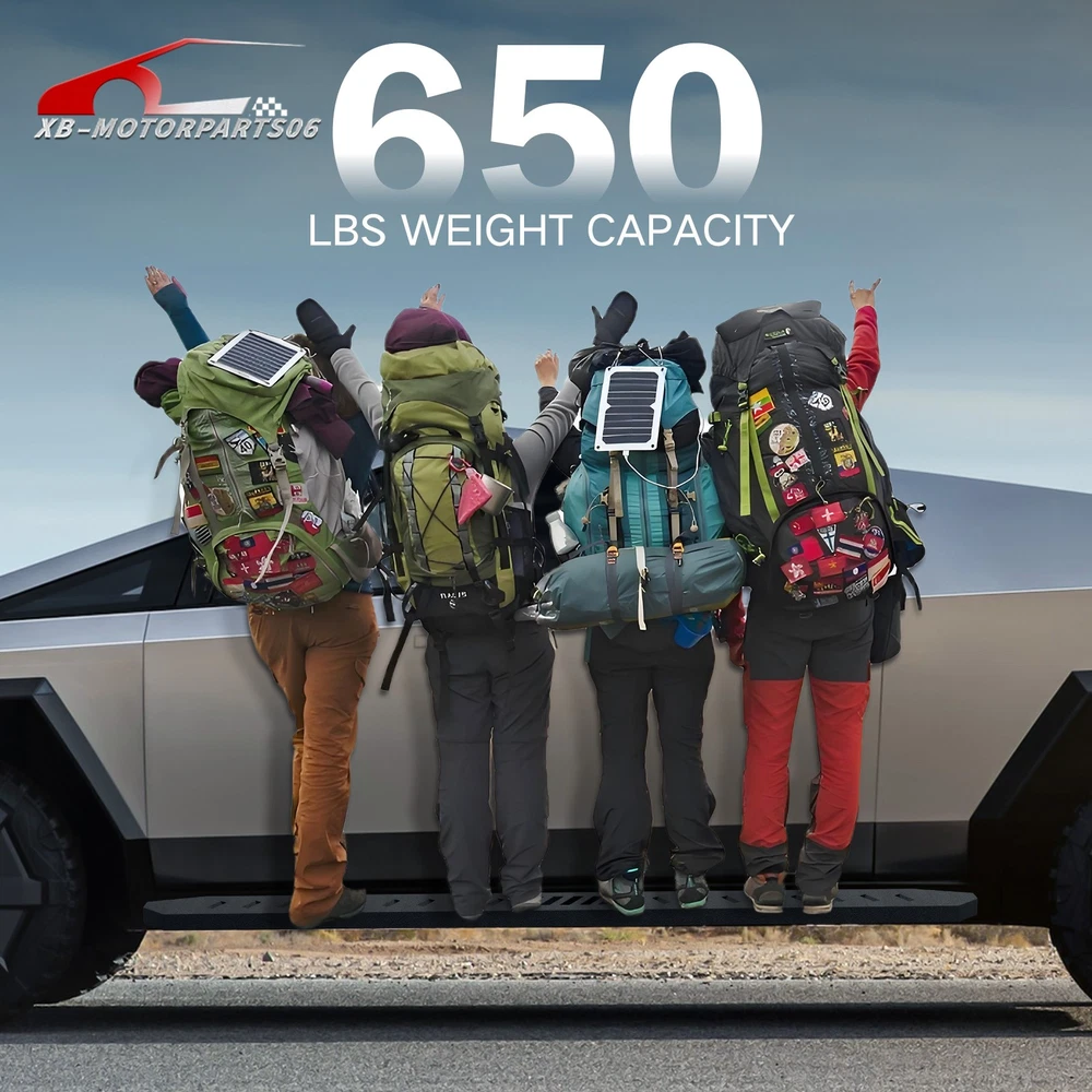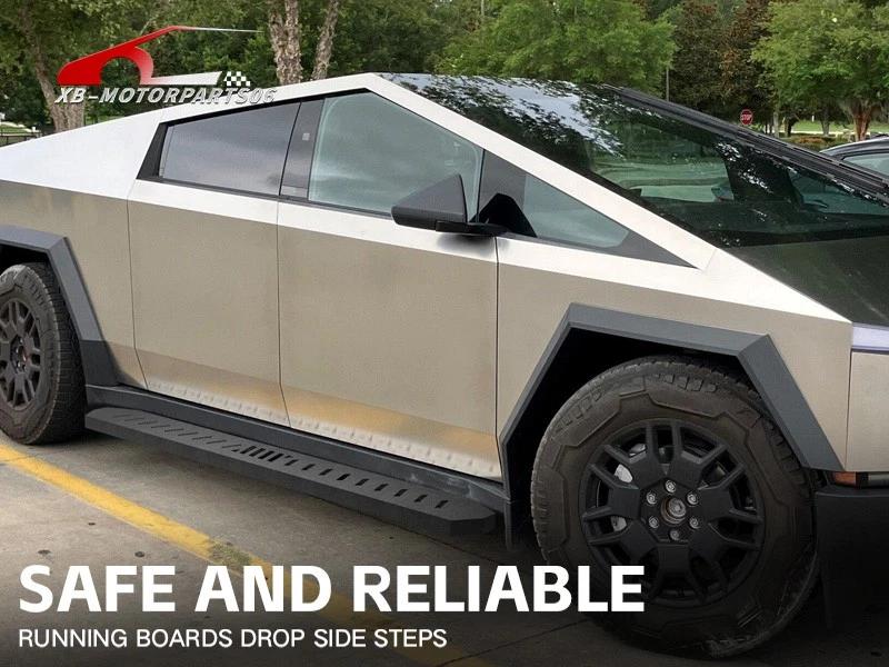 Running Boards Exterior Brackets Nerf Bar Step Rails For 24-25 Tesla Cybertruck Suitable Models : Compatible with 2024 2025 Tesla Cybertruck Package Includes : 2 x Running Boards Side Steps, brackets, instructions, and all necessary hardware Product Information : Product Dimensions: 88.41 x 5.83 x 1.35 inches Installation mode: Bolt-On Weight Limit: 550LBS Placement on Vehicle: Left and Right Item Weight: 57.86 pounds Material: Carbon Steel Color: Black (hand measurements may have an error of 2-3 mm/0.078-0.118 in) Feature: ① Enhancing convenience for vehicles with lift kits and oversized tires, while also making roof access easier; ② The extra-thick main tube provides superior load-bearing capacity, preventing deformation and enhancing vehicle protection; ③ The stepping area is designed with a high-end textured pattern, ensuring secure and stable footing to prevent slipping; ④ The high-quality black powder coating provides outstanding rust and corrosion resistance. Constructed from heavy-duty 2mm carbon steel, each side can withstand a weight of 650 pounds. Precision laser cutting and stamping techniques contribute to a non-slip step surface and enhanced traction; Warranty Period : 1 year Standard Shipping (FedEx Ground or FedEx Home Delivery) Will usually ship within 3 business days of receiving cleared payment Suitable Models : Compatible with 2024 2025 Tesla Cybertruck Package Includes : 2 x Running Boards Side Steps, brackets, instructions, and all necessary hardware Product Information : Product Dimensions: 88.41 x 5.83 x 1.35 inches Installation mode: Bolt-On Weight Limit: 550LBS Placement on Vehicle: Left and Right Item Weight: 57.86 pounds Material: Carbon Steel Color: Black (hand measurements may have an error of 2-3 mm/0.078-0.118 in) Feature: ① Enhancing convenience for vehicles with lift kits and oversized tires, while also making roof access easier; ② The extra-thick main tube provides superior load-bearing capacity, preventing deformation and enhancing vehicle protection; ③ The stepping area is designed with a high-end textured pattern, ensuring secure and stable footing to prevent slipping; ④ The high-quality black powder coating provides outstanding rust and corrosion resistance. Constructed from heavy-duty 2mm carbon steel, each side can withstand a weight of 650 pounds. Precision laser cutting and stamping techniques contribute to a non-slip step surface and enhanced traction; Warranty Period : 1 year