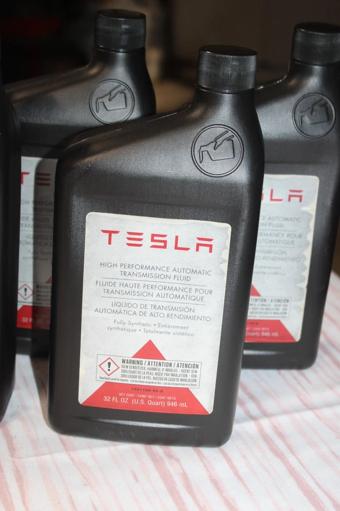 Tesla High Performance Automatic Transmission Fluid Full Synthetic 5 U.S. Quarts Model No. 103110600A Includes 5 individual bottles Brand New Sealed Bottles Refer to pictures PLEASE e-mail me with any questions or for additional pictures. FREE SHIPPING In the US. Thank you for your interest and have a great day.