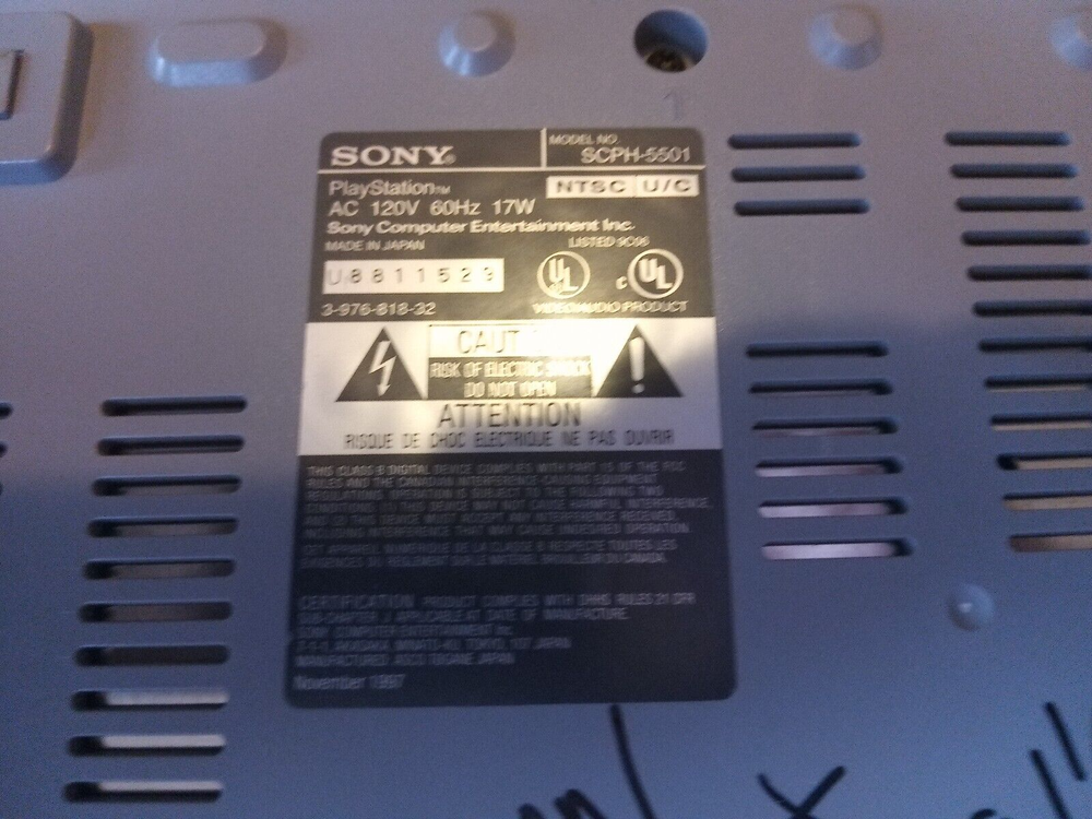 Sony Playstation Model # SCPH-5501 Black Marker On Side And Bottom Of Console New A/V cable And AC power Cord One Controller Tested Works
