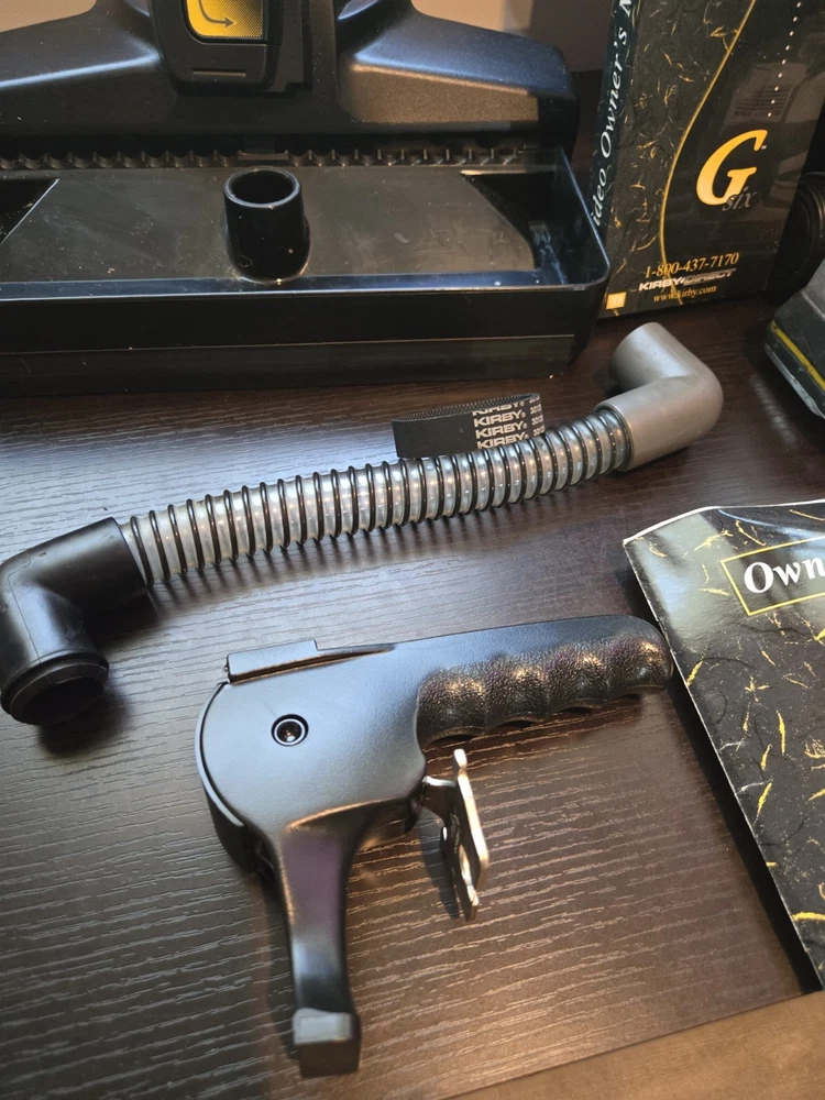 Extremely lightly used. Comes with all accessories shown, user manuals, vhs user manual, carpet shampoo box and accessories. The Kirby GSIX G6D Vacuum Cleaner is a high-quality upright cleaner known for its powerful suction and versatile use. With its black color and corded design, this model is easy to spot and use throughout the home. The included carpet shampoo system allows for convenient cleaning of carpets without the need for additional products. Perfect for keeping your home clean and fresh, this Kirby vacuum is a reliable choice for any household.