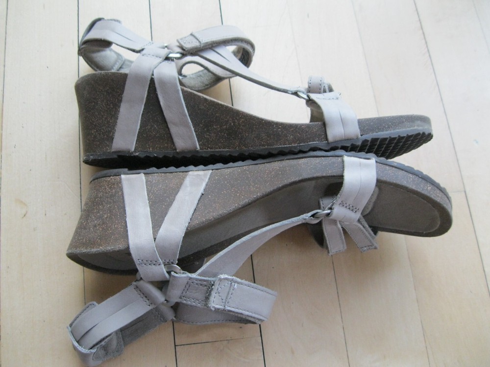 Teva Ysidro Universal Leather Open Toe Strappy Comfy Wedge Sandals Taupe Women 8 Retails: $149 Website Description: A sleek, feminine take on the iconic Universal, this light, comfortable wedge sandal features fully adjustable leather straps for the absolute perfect fit. Easy hook-and-loop closure comes on and off quickly and gets the fit just right Cork wedge midsole delivers the kind of comfort you can walk all day in Lux leather wrapped footbed is exceptionally soft and comfortable under foot Poron® foam footbed pods delivers cushioned comfort that won’t pack out Rubber outsole Gentle reminder, please c ontact me if there is ever an issue . If I don't know there is a problem, I can't fix it.
