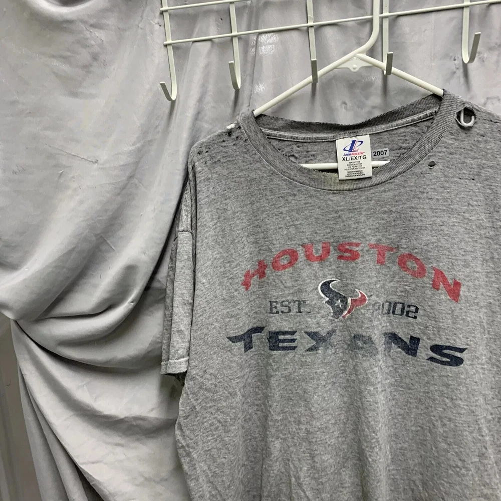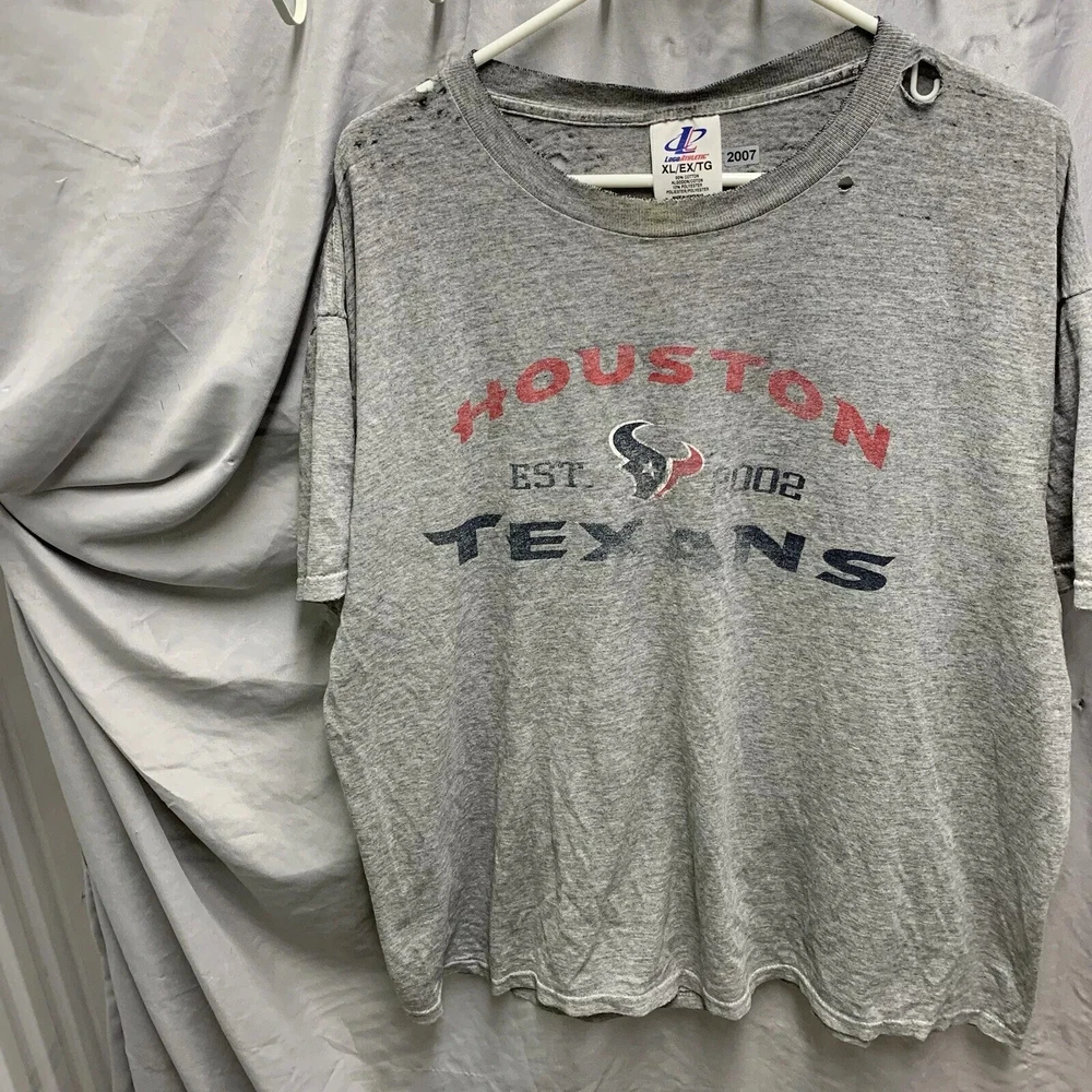 Show off your love for the Houston Texans with this limited edition grey short sleeve shirt from Logo Athletic. Made with a comfortable cotton and cotton blend fabric, this shirt features a solid pattern with the team's logo prominently displayed on the front. The shirt is designed with a crew neck and regular fit, making it perfect for any 90s-themed event or casual outing. This shirt is not only stylish but also functional, with features such as preshrunk, lightweight, and breathable. It's suitable for all seasons and can be worn during winter, summer, fall, and spring. The shirt is handmade in the United States and is perfect for fans of the Houston Texans who want to show off their team spirit.