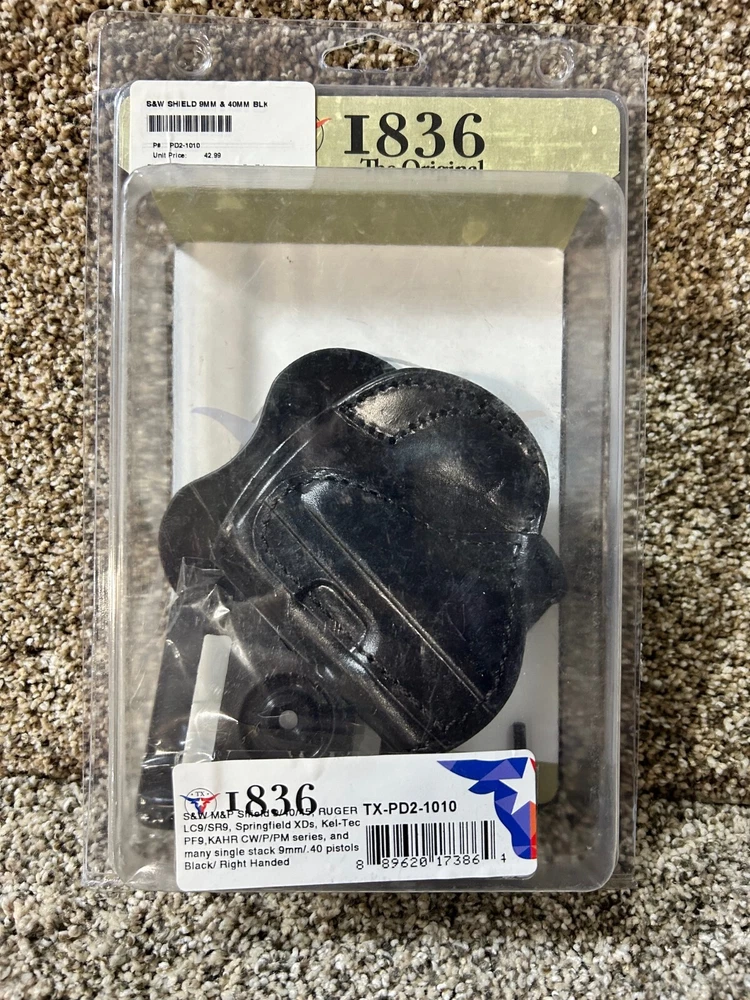 Texas 1836 Holster for 9mm/.40cal S&W, Springfield, Ruger, etc, - RH TX-PDX-1010 FITS: S&W M&P Shield 9/40/45 Ruger LC9/SR9 Springfield XDs Kel-Tec PF9 KAHR CW/P/PM Series Many other single- stack 9mm/.40 Pistols