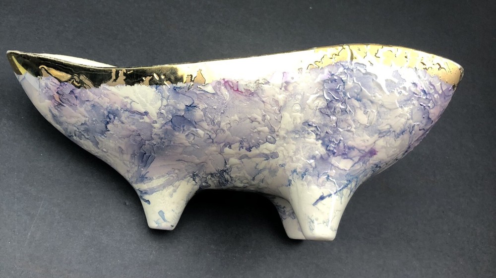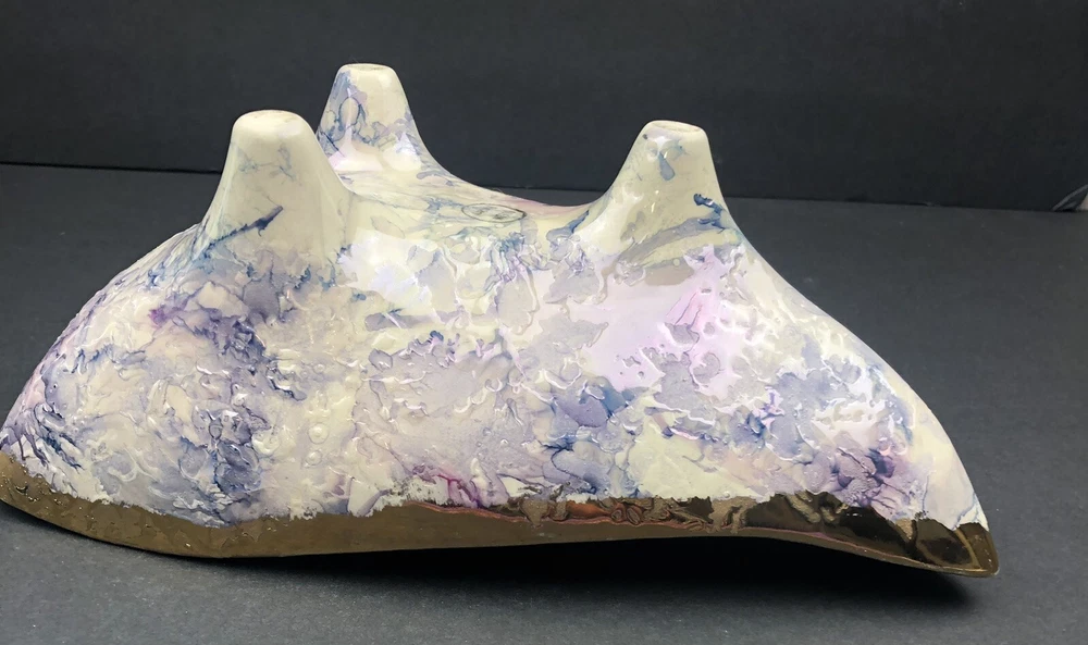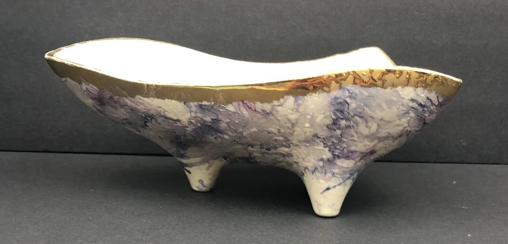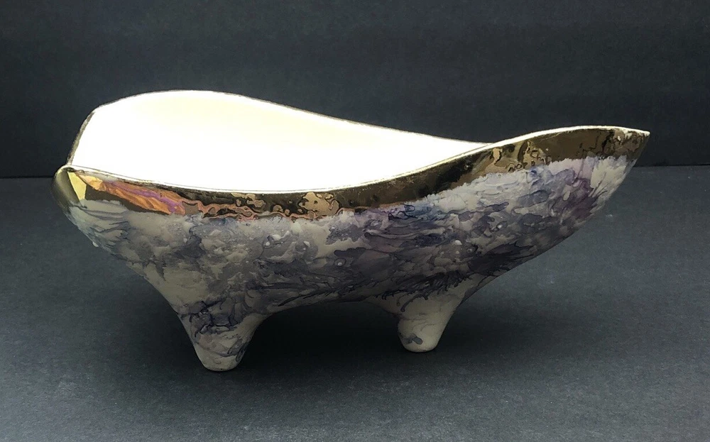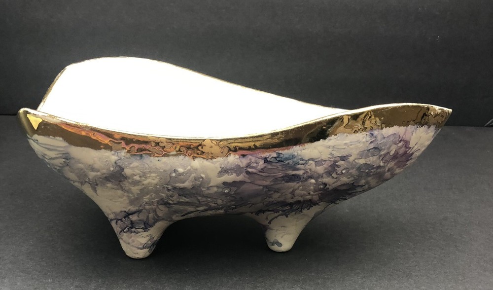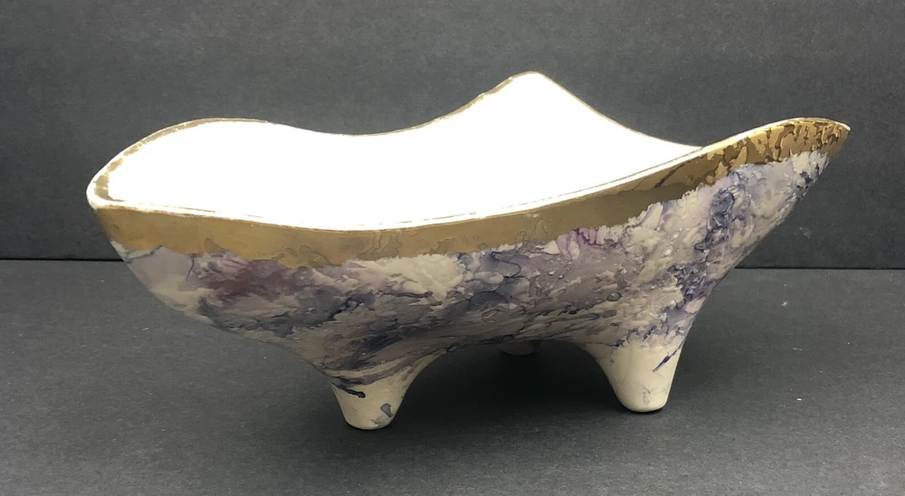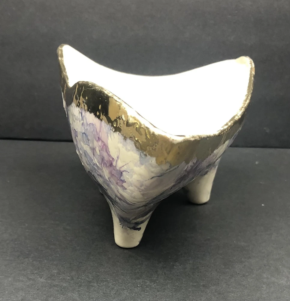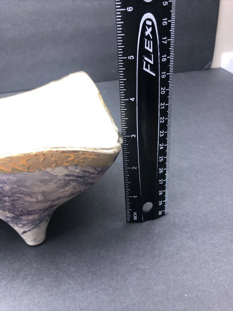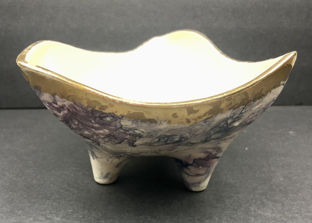 BEAUTIFUL QUEEN POTTERY TEXTURED ART FOOTED TRIANGLE BOWL.