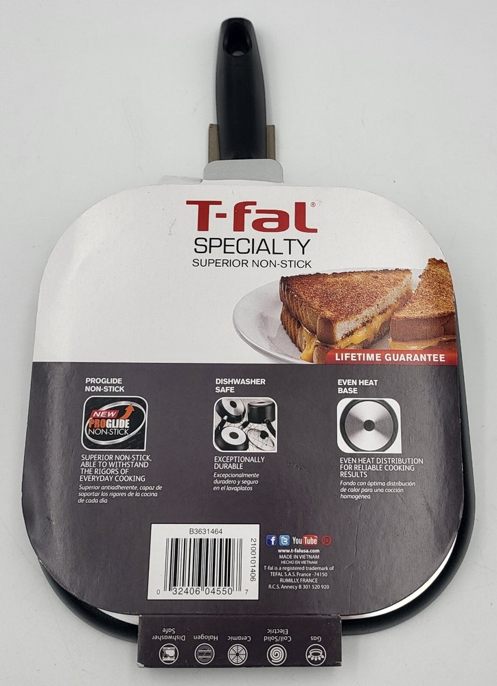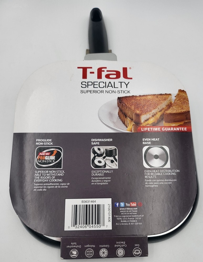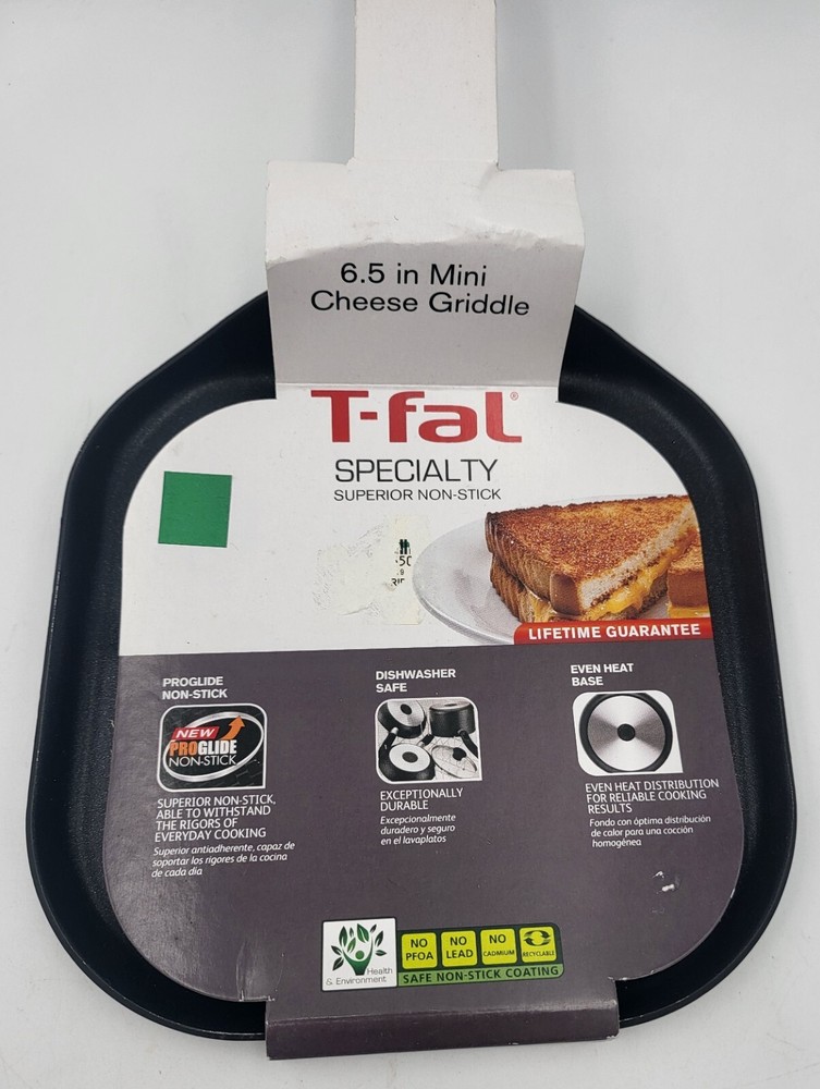Created with Eselt - eBay Listing Template Editor Send us a message Created with Eselt - eBay Listing Template Editor Our Store Seller Profile Feedback Save this seller Contact Created with Eselt - eBay Listing Template Editor T-fal Specialty Superior Non-Stick 6.5in Mini Cheese Griddle Dishwasher Safe Condition : Our photos are always 100% real. No stock photos. What you see is what you get . This item is brand new in its original, unopened packaging Additional Item Information : Superior non-stick, able to withstand the rigors of everyday cooking Dishwasher safe - exceptionally durable Even heat base - even heat distribution for reliable cooking results No PFOA, no lead, no cadmium Safe for gas, electric, ceramic and halogen cooking Created with Eselt - eBay Listing Template Editor Payment Item will be shipped the next business day after receiving confirmed payment Shipping We offer free shipping on all of our items. Books and vintage reading materials are shipped via USPS Media Mail Other items under 1lb are shipped via USPS First Class Mail Items weighing over 1lb that cannot be sent through Media Mail will be sent through either USPS Priority Mail, UPS Ground or FedEx Home Delivery NOTE: We do not ship video games via USPS Media Mail as this is against USPS policy and may result in your package being considerably delayed Expedited shipping may be available at buyer's expense. Please contact us if you require expedited shipping. Returns Returns will be accepted within 30 days of receiving the item, if the item is still in the condition it was shipped in, for a full refund (minus return shipping cost). Unopened items that have been opened will still be accepted for a lesser refund as long as they are undamaged (not including factory defects). Damaged items will not be accepted, but may qualify for a refund if they were damaged in shipping. Please message us with any questions. Other Love the item, but don't love the price? Feel free to reach out to us with an offer. Or "watch" the item to be notified of any future sales or discounts.