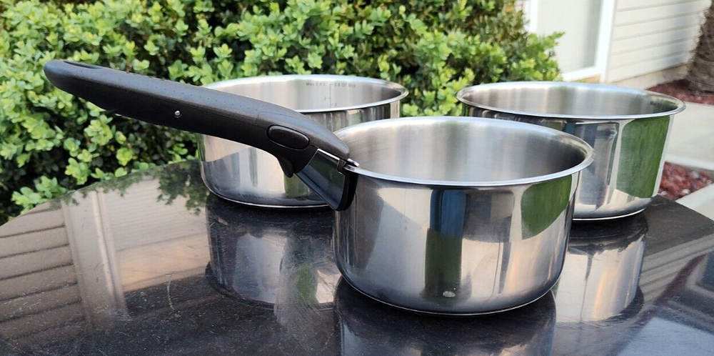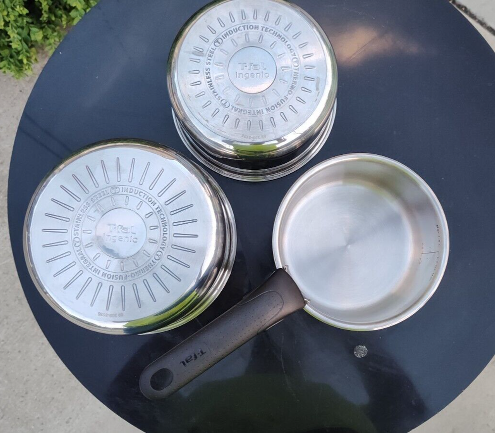 Introducing the T-fal Ingenio Stainless Steel Cookware Set, a four-piece set that includes 1qt, 2qt, and 3qt saucepans, perfect for induction, electric, and gas stoves. The round-shaped saucepans are made of high-quality stainless steel material, ensuring durability and heat resistance up to 500°F. This set is dishwasher safe, making it easy to clean and maintain. The silver color and sleek design add a touch of elegance to any kitchen. With a weight of 1lbs 8oz, 1lbs 12oz, and 2.0lbs, the set is perfect for cooking up delicious meals. Get ready to cook like a pro with this amazing T-fal cookware set!