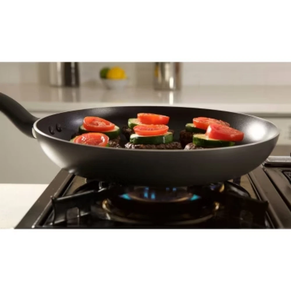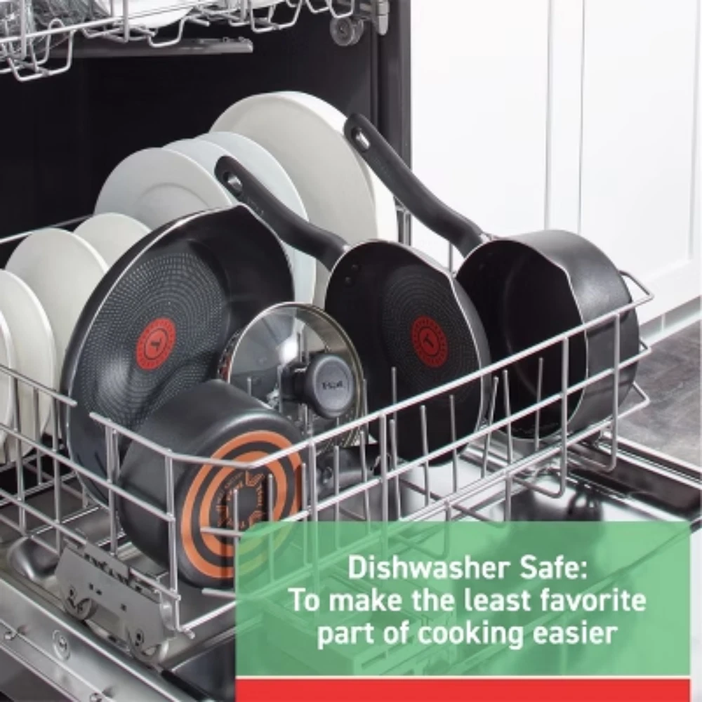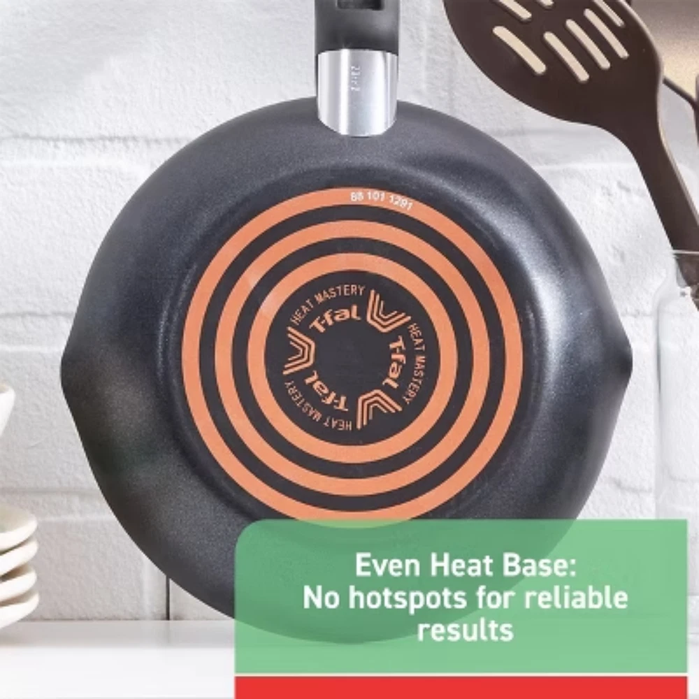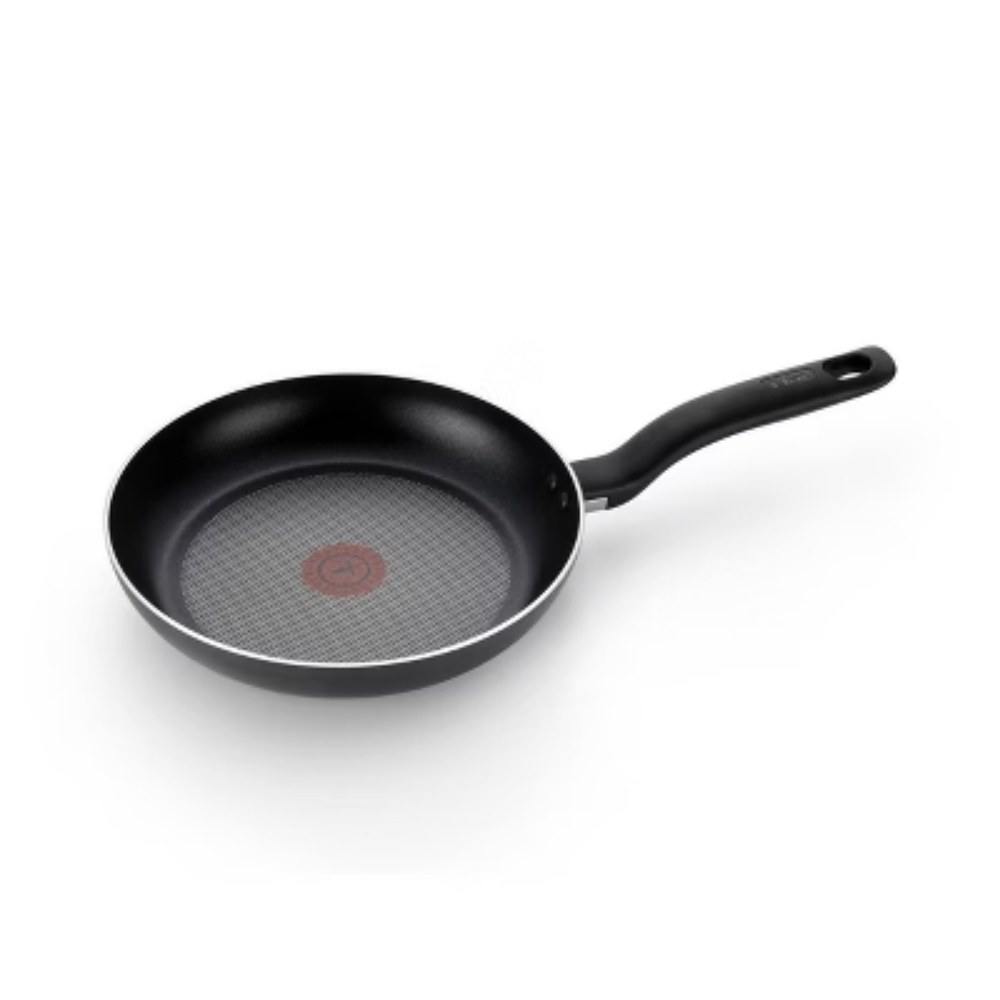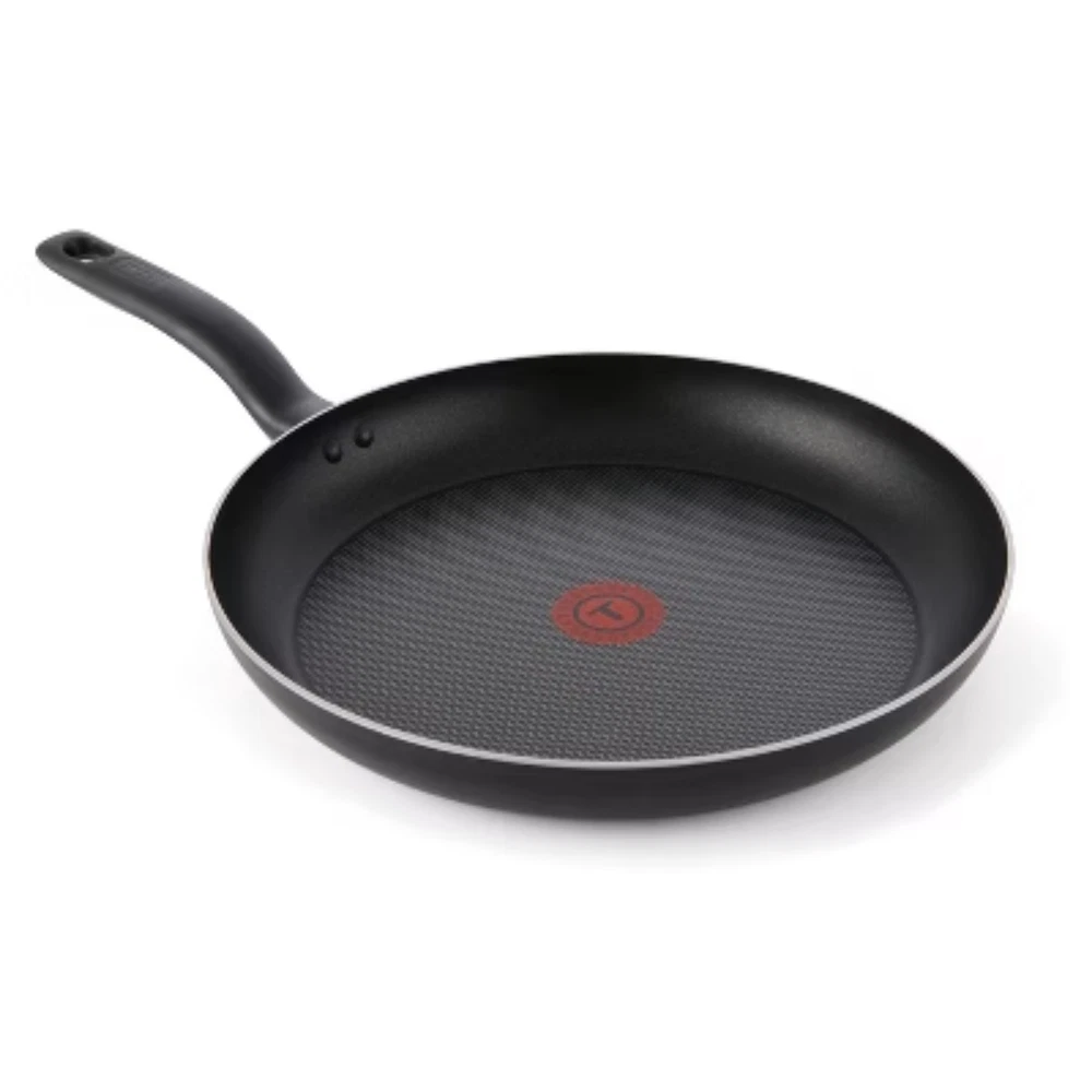 Description This Simply Clean Saute Pan from T-Fal is the perfect addition to your cookware collection. The non-stick frying pan has a round, flat base that delivers even heat distribution for reliable results, regardless of what food you are sauteing, scrambling or frying. Made with durable aluminum and a dishwasher-safe design for easy cleaning, you can saute up some colorful veggies easily in this even-heating frying pan. highlights Thermo-spot heat indicator clearly shows when the pan is perfectly preheated Durable aluminum construction and superior non-stick design makes for fuss free, clean cooking Dishwasher-safe design makes for easy and quick clean up Features stay-cool, comfort-grip ergonomic handle to make cooking a breeze