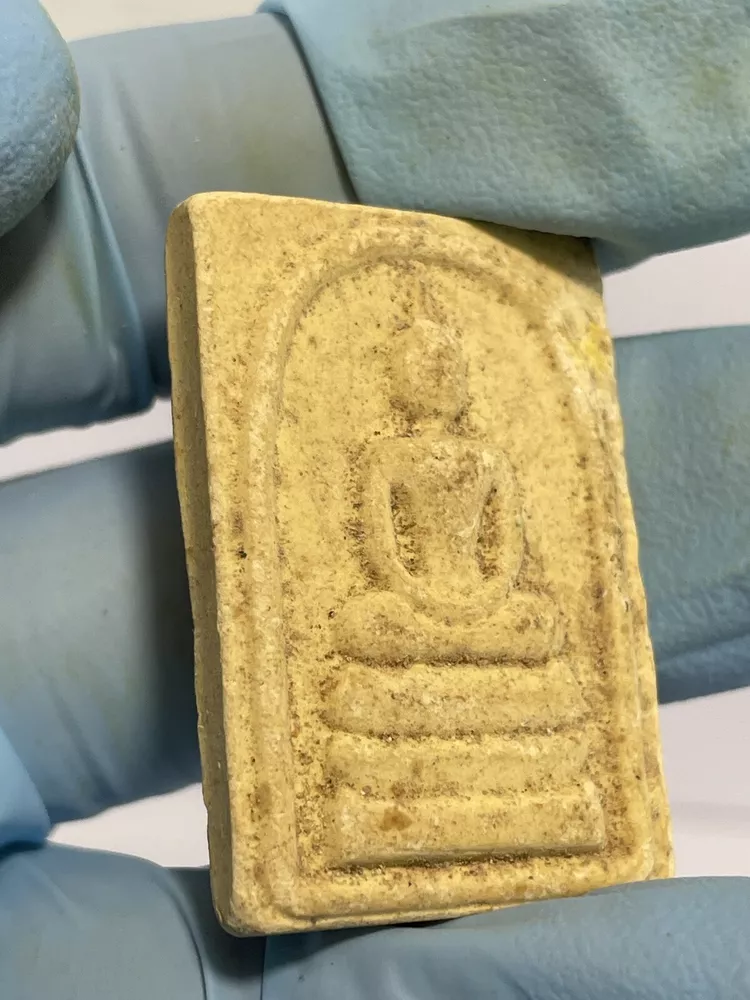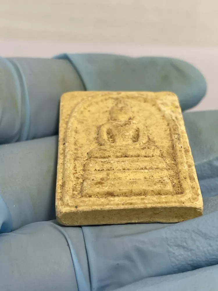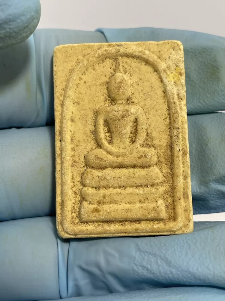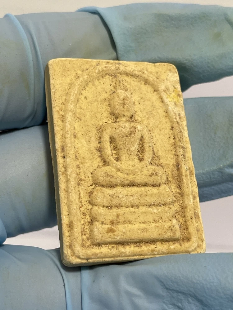 I do not know about this amulet who is the maker or which year ? The amulet was a gift to me from an old lady who came to Canada since 80’s and no longer can not taking care of this amulet. I do not know about this Amulet. The amulet size : 37mm X 25mm X 7mm Thank you.