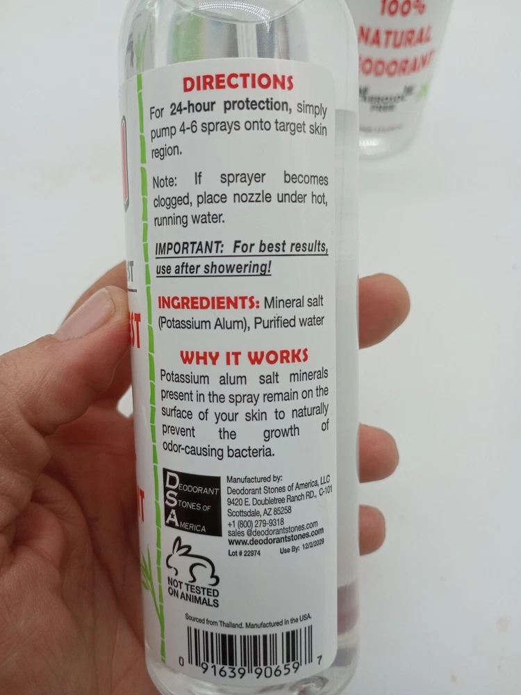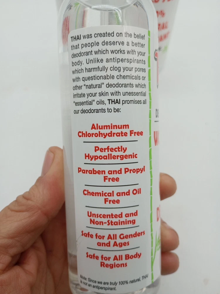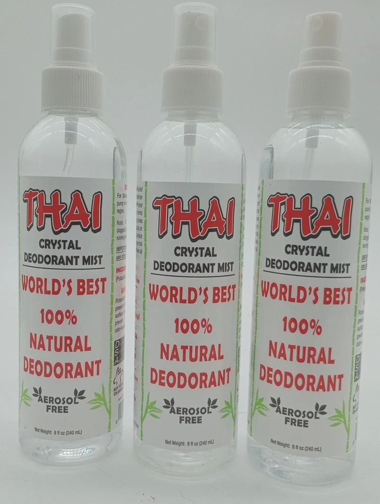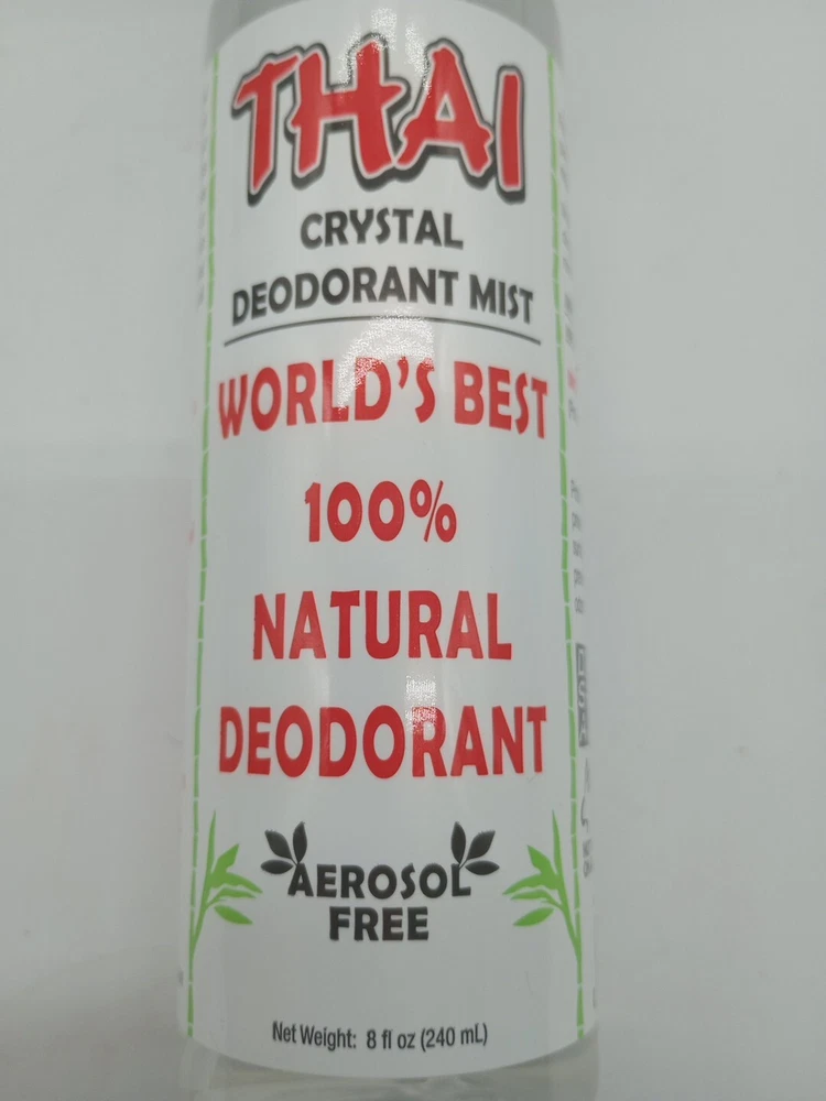 Type:DeodorantUPC:0091639906597Size Type:Regular SizeScent:unscentedFeatures:aluminum free, chlorohydrate free, Hypoallergenic, Paraben-Free, propyl free, chemical free, oil free, safe for all genders and ages, safe for all body regionsgtin13:0091639906597Fragrance Name:Thai Crystal deodorant MistFormulation:SprayMPN:TH08Brand:Thai Deodorant StoneCountry/Region of Manufacture:United StatesVolume:8 fl oz