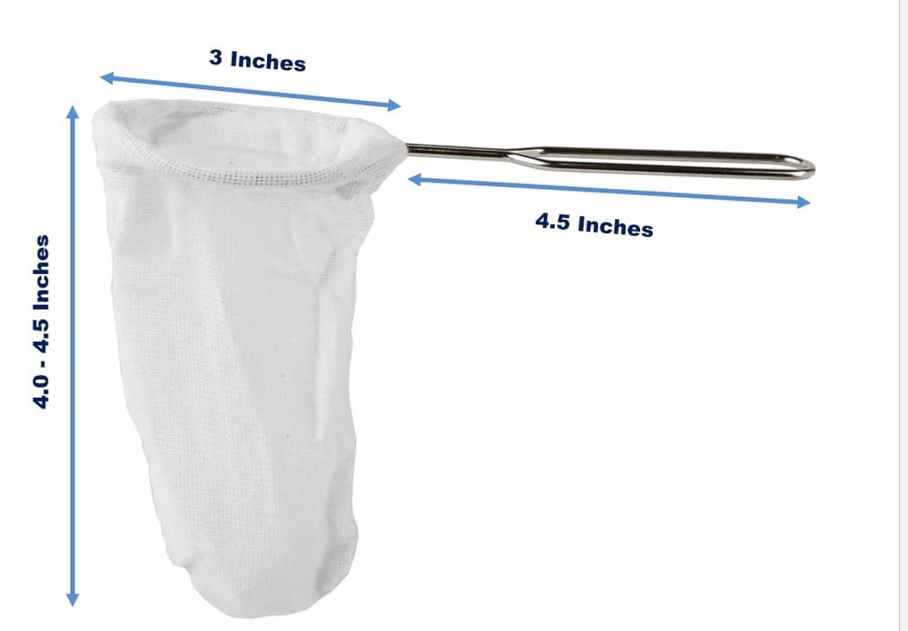 Thai Tea Filter (3 Inches) Reusable Traditional 7.5" x 3.0" x 4.5", White Product Details Diameter : 3" Metal Handle Length : 4.5" Cone shape bag depth : 4.0-4.5" Authentic and traditional made in Thailand, Specifically for Thai tea and coffee. Perfect for 1 or 2 cups. Chrome Plated Plain Steel Handle, Easy for Handle This filter is made of muslin cotton Reusable Thai Reusable Coffee/Tea Filter Traditional Thai style, Tea Strainer, Coffee Strainer, Cloth Tea Filter, Muslin Cloth Strainer (3 Inches)