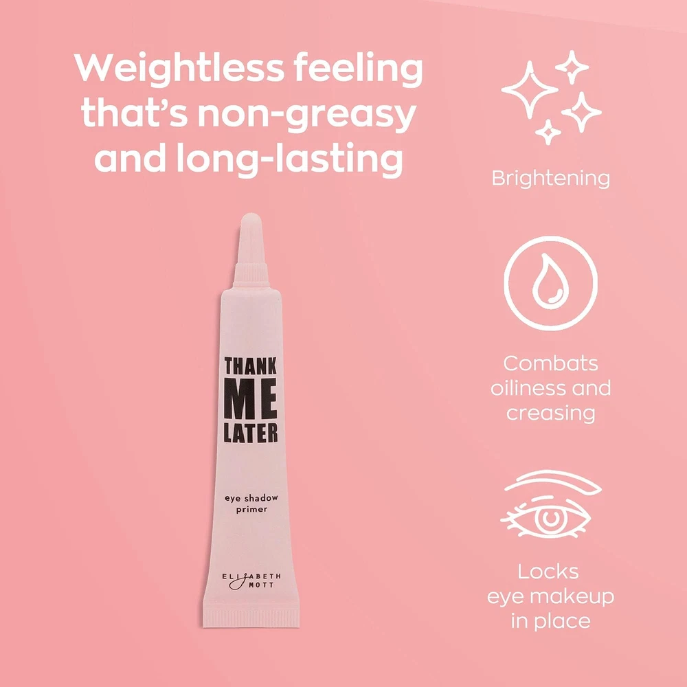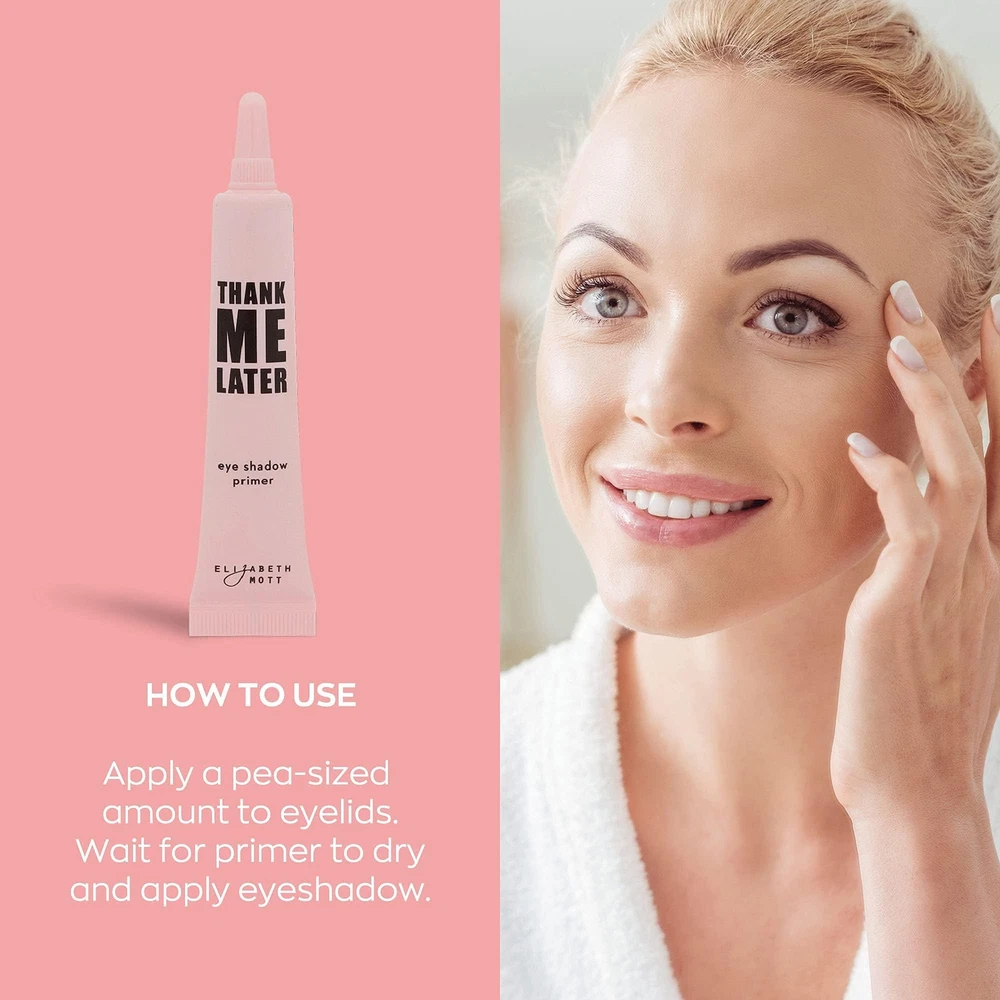 LONG LASTING Love your shadow but hate the fallout and how fast it fades? What about those messy makeup creases and smudges? So not glam. With the Thank Me Later eye primer, your shadow will go on smooth and stay that way all day with no extra touch-ups needed, so start thinking of what you'll do with all that free time. The waterproof eye base withstands everything from workouts to busy days that start before dawn and end long after the sun sets. QUICK DRYING Simply blend a pea-sized amount onto your lid before applying your favorite eye shadow. Remember, a little goes a long way! The silky formula dries completely clear in seconds and perfectly preps your lids for a flawless shadow application that locks eye makeup in place. Go straight from work to a dinner date without stopping for a shadow redo. BRIGHTENS AND BALANCES Is your eyeshadow looking a little dull? It may not be completely to blame. Evening the skin tone of your eyelids can make the shadow pigment pop like never before. Our Thank Me Later eye primer uses a pearl powder to smooth and even skin so shadows show up more vibrantly. Better yet, the sebum-controlling powder combats the extra oiliness that causes creases to form. Watch as your favorite eyeshadows intensely come to life and handle anything the day dishes out. WEIGHTLESS FEEL Light as a feather and silky smooth to the touch, our eyeshadow base is pure bliss for your lids. The non-greasy formula has that all-natural look down pat and is perfect for oily skin prone to creasing and sweating. NO ANIMAL TESTING is a cruelty-free brand proudly registered in PETA's Beauty Without Bunnies program. Thank Me Later eye primers aren't tested on animals and are also paraben free. MONEY BACK GUARANTEE if for any reason you aren't satisfied, contact us for your money back! BEST OF KOREAN BEAUTY: We work with the finest Korean manufacturers to bring the best Korean skincare and beauty to you; infused with effective Korean ingredients and breakthrough formulas; cruelty-free, and Leaping Bunny approved FLAWLESS EYE MAKEUP BASE: Achieve flawless eye makeup with ease; our eye primer enhances eyeshadow pigment for bold, vibrant color; eliminates fallout; controls oil for all-day wear; perfect for mature skin; helps conceal fine lines; smoother application and seamless blend HOW TO USE FOR BEST RESULTS: Using our primer is a breeze for stunning results; apply a pea-sized amount of primer with your ring finger to clean, dry eyelids; wait 30 seconds for it to dry adequately; then apply your desired eye makeup LIGHTWEIGHT FORMULA: Crafted with high-quality ingredients including pearl powder; our eyeshadow primer offers a well-balanced, weightless, paraben-free, non-greasy formula; you will not need constant touch-ups and won’t feel heaviness around the eyes EYE PRIMER WITH SKIN BENEFITS: Our eye primer for mature skin does more than prep your lids; it enhances your skin; evens skin tone; enlivens complexion; conceals discoloration; balances skin; perfect for oily lids; protects against creasing; ensures flawless eye makeup all day long