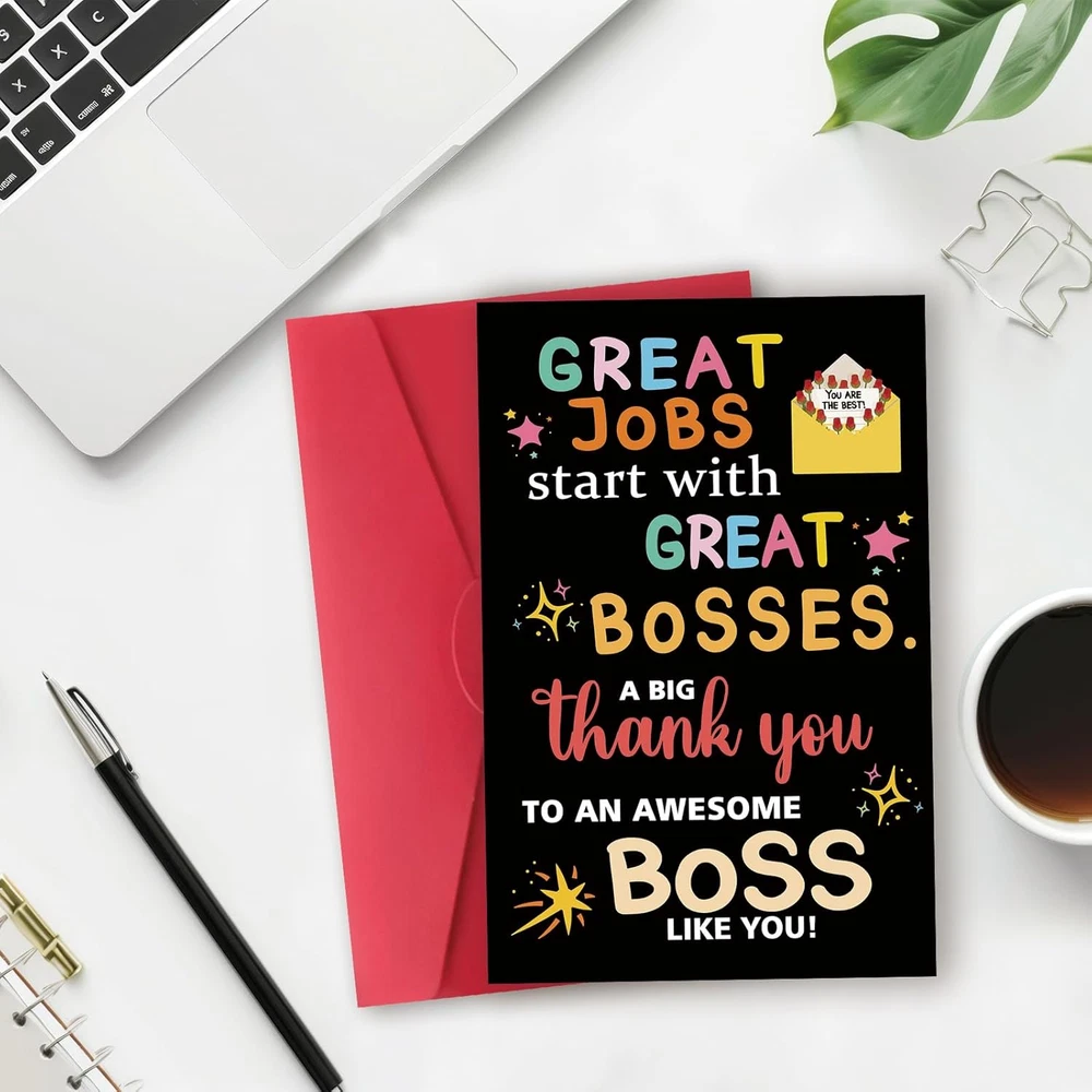Store New Arrivals Add to Favorite View Feedback Contact Thank You Card Gifts for Boss Leader Manager, Cute Bosses Day Card Gifts for Her Him, Funny Boss'S Day Card Gifts for Men Women, Best Boss Appreciation Card Description Number of Items 1 Color ZY165 Manufacturer Part Number ZY-165-BH Item Weight 0.95 ounces Package Dimensions 8.47 x 5.71 x 0.16 inches Unique Gift: You can give this as a gift to your boss, friends, or leader at any time and place. It's such a great gift to express love. Boss's Day Card: When your boss or colleagues and even teachers receives this card, she may be very excited. When she opens the card,she will smile happily. Premium Quality: Cards are printed on recycled 300gsm linen cardstock for a luxury feel. Package Include: The 8 x 5.3inches / 20.5 x 13.5cm greeting card sturdy red matching envelope. Blank Inside: leaving plenty of room for your personal message, show your love to the special one. Product Description Product Display Policy on Product Sourcing and Fulfillment Dear Valued Customers, We would like to clarify an important aspect of our business operations to ensure transparency and trust in our relationship with you. Product Fulfillment: Fulfillment by Amazon (FBA): The products are stored in Amazon Fulfillment Centers. This storage solution ensures that the inventory is kept in a secure and climate-controlled environment, which helps maintain the quality and safety of the products. Efficient Delivery: Utilizing Amazon's fulfillment services allows us to leverage their robust logistics network to provide you with fast and reliable shipping. This means you receive your purchases in a timely manner with the added assurance of Amazon's trusted delivery systems. Customer Assurance: Quality Control: Every product is carefully selected and undergoes rigorous quality checks before being listed for sale. Our commitment is to provide you with high-quality items that meet your expectations. Secure Storage: Amazon's Fulfillment Centers are renowned for their high standards of security and efficiency. Your products are stored safely until they are shipped to you. Customer Support: Should you have any questions or concerns regarding your purchase, our customer support team is readily available to assist you. We are dedicated to ensuring your satisfaction with every transaction. We appreciate your business and are committed to providing you with a seamless and satisfactory shopping experience. Thank you for your trust and understanding. Sincerely, -Manager- Shipping Policy and Expectations Dear Valued Customers, We are committed to ensuring that your package arrives as quickly as possible. However, we kindly ask for your understanding regarding certain factors that may occasionally affect shipping times. Our Commitment: Prompt Processing: We strive to process and dispatch your orders promptly to minimize any delays. Reliable Shipping Partners: We work with reputable shipping companies to ensure your packages are handled with care and delivered efficiently. External Factors: While we do everything within our power to expedite your order, please note that some factors are beyond our control: Weather Conditions: Severe weather can impact shipping routes and cause delays. High Postal Traffic: During peak seasons, such as holidays, the increased volume of packages can lead to longer delivery times. Shipping Company Performance: The performance and schedules of shipping companies may vary, potentially affecting delivery times. We appreciate your patience and understanding in these situations. Rest assured, we are doing everything possible to get your package to you as soon as possible. Customer Support: If you have any questions or concerns about your order, please do not hesitate to contact us. Our customer support team is here to assist you and provide any necessary updates on your shipment. Thank you for your trust and continued business. Shipping Policy and Customer Satisfaction Shipping Information: Service Area: We offer shipping to the lower 47 states. Please confirm with us about the delivery date before completing your purchase. Thank you. Address Requirements: We do not accept P.O. Boxes. Please provide a physical address for delivery. Shipping Restrictions: Unfortunately, we are unable to ship items to the state of Ohio and California due to shipping agreements and restrictions. International Shipping: eBay International Shipping Hub: For shipping outside of the continental USA, we only use eBay's International Shipping Hub. The item is shipped to Illinois and then sent to the rest of the world. Duties and Taxes: International customers are responsible for all duties and taxes. Please continue to check out to calculate the shipping costs for your country. Inquiries: Messages regarding eBay's International Shipping Program must be directed to eBay exclusively. Customer Satisfaction: We try our very best to ensure every customer is completely satisfied. If there's a problem, please message us! We're happy to help. If you are happy with your purchase, we would really appreciate your positive feedback. Once positive feedback is left, our system will automatically leave positive feedback in return. Thank you for your business and for helping us maintain a positive and trustworthy marketplace. Return and Exchange Policy Dear Valued Customers, We strive to ensure that you are satisfied with your purchase. However, we would like to clarify our policy on returns and exchanges. No Returns Policy: No Returns: We do not accept returns. Please make your purchase carefully and review all product details before completing your order. Damaged or Non-Functional Items: Replacement or Exchange: If your item arrives damaged or not functional, we will be happy to replace or exchange it. Please contact us immediately with details of the issue, and we will assist you in resolving the matter promptly. Contact Information: If you have any questions or concerns regarding your purchas