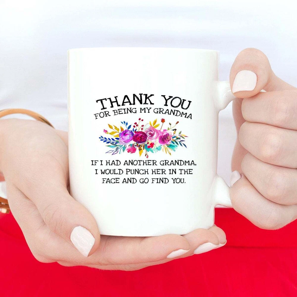 Thank You For Being My Grandma Funny Grandma Mug Grandparents Coffee Mug Product Details.. This high quality 11oz. ceramic white mug has a premium hard coat that provides crisp and vibrant color reproduction sure to last for years. Perfect for all hot & cold beverages. The highest quality printing possible is used. It will never fade no matter how many times you wash it. Material: 100% Ceramic. Print both sides. Dishwasher and Microwave Safe. High Gloss + Premium White Finish. Printed in the U.S.A. Personalized & Custom. We support personalized and custom mug to add custom, when placing an order, you can add notes to the "order note" in shipping address section. Also you can contact us directly via message. Shipping Info. Ready to ship in 1 to 2 business days, All products are made-to-order and proudly printed in the United States. Shipped by USPS and DHL, You will receive your order in 5-7 days. Replace & Refund. All products are defective during shipping broken, chipped will be replaced free of charge. You are not satisfied with the product, we will refund 100% money to you. If any other issues arise, please do not hesitate to message, we would be more than happy to assist you.