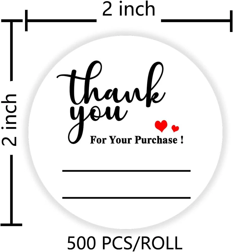 These thank-you stickers are a game-changer for my small business! The minimalist design looks clean and professional, and the writable space lets me add a personal touch. At 2 inches, they're the perfect size for packaging without being overwhelming. I love that they come in a pack of 500—plenty to last while showing appreciation to every customer. The adhesive sticks well but doesn't leave residue, and the black/white options match any branding. Perfect for bakeries, shops, or anyone who wants to add gratitude to their unboxing experience!