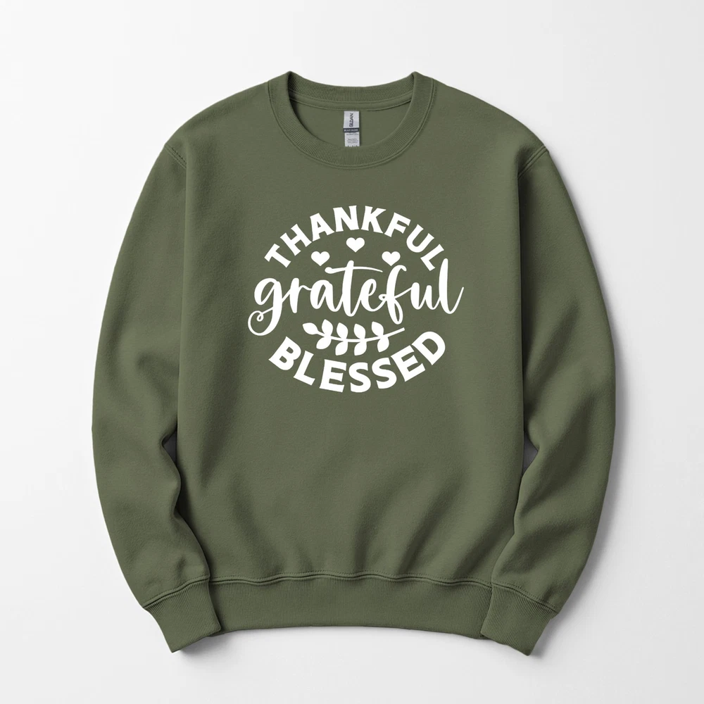 Thankful Grateful Blessed Sweatshirt SIZE Runs True To Size Please Refer To The Size Guide In The Pictures FEATURES 50% cotton and 50% polyester Goes with any outfit Please pick size and color. Thanks so much for looking!