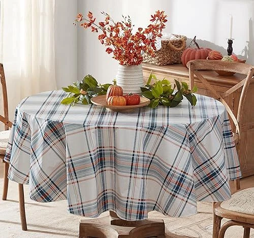 30 Days Return Policy Fast Delivery Trusted seller Thanksgiving Blue Rustic Mountain Plaid Vinyl Flannel Backed Tablecloth - Stonewashed Blue and Rust Country Plaid Easy Care Vinyl Dining Table Cover, 70" Round Product Description Vinyl Flannel Back Easy Care Wipe Clean Tablecloth Imported Blue Rustic Mountain Plaid Vinyl Flannel Backed Tablecloth - Stonewashed Blue and Rust Country Plaid Easy Care Vinyl Tablecloth, 70” Round SIZING: 70" Round (178cm) - Fits round tables from 20 Inch x 58 Inch Diameter and Seats 4 to 6 People - Round STYLING: The Blue Rustic Mountain Plaid Vinyl Flannel Backed , and Fall Tablecloth is a country rustic pattern that features a medium scale plaid in rust, stonewashed blue and rust on a white colored background. FEATURES: Beautiful Easy Care Kitchen and Dining Room Tablecloth for Dining, Entertaining, Parties, Picnics, Restaurants and Cafeterias. Indoor and Outdoor Flannel Back Holiday Tablecloths are Easy Care - Just Wipe Clean - No Laundering Needed CARE INSTRUCTIONS:: Vinyl Flannel Backed Tablecloth - For best results use mild soap with damp cloth or sponge on vinyl surface of tablecloth. Do not Iron or machine wash or dry. Materials: Surface 100% Vinyl, Flannel Backing: 100% Polyester Shipping Returns Payment Shipping Shipping is FREE to all addresses other than APO/PO boxes in the lower 48 states. All our stock ships from US-based warehouses. Shipped via USPS or UPS (depending on location and package weight) Unless stated otherwise, all orders will ship within 24-72 hours of your payment being processed. Check our feedback to see the great reviews of FAST shipping we offer. Returns As our valued customer, we will do our best to make sure the product you receive arrives to you on time and as expected. If you are not satisfied with your purchase, please contact us within 30 days of receiving your order to process a return. Payment We currently accept payment via eBay managed payments only. Once payment is cleared, we will dispatch your shipment within 1-3 business days. Please refer to the "Shipping" tab for more information regarding shipping speed to your destination.