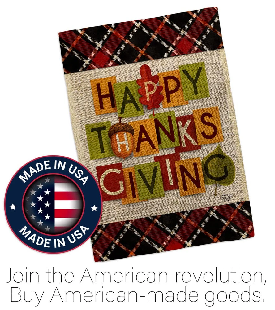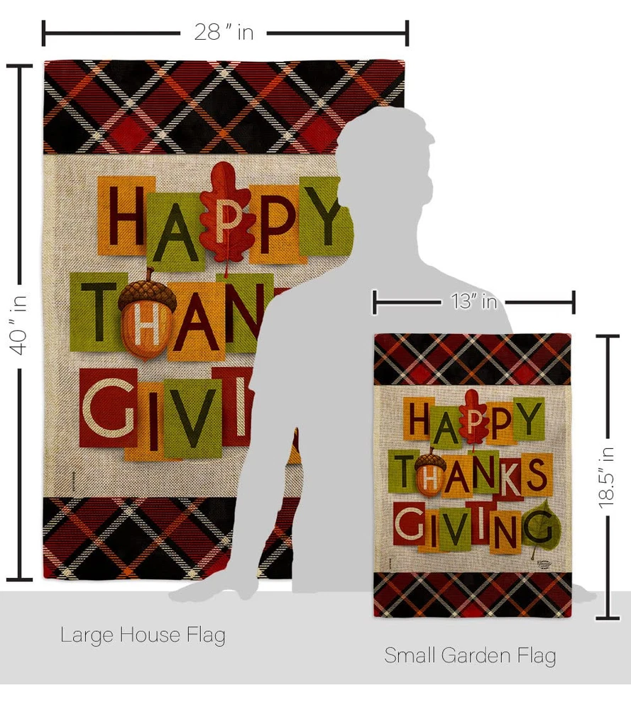 Thanksgiving Beautiful Matching Large House Mini Garden Flags Set have variety of Flags Set for all occasions. Uniquely design for hanging indoor or outdoor use. We are committed to offering you exceptional values. Our customers enjoy displaying our Flags Set for longer periods. Specification: Theme: Thanksgiving Size: House 28" X 40" Size: Garden 13" X 18.5" Print: Double-Sided Readable: Readable Both Sides Material: Weather Resistant Double Burlap Stitching: Double Stitched Display: Vertical Hang Type: Sleeve Artist: © Eva Lee Special Features: Origin: Made In USA 92632 Package Include: 1 pc x Large House 28" X 40" 1 pc x Mini Garden 13" X 18.5" For more than a decade, we’ve been dedicated to manufacturing flags with no comparison in quality and beautiful designs. Our flags are made with our Guard material that is soft to the touch and designs can be read correctly on the flag. A feature that our customers will love. We are committed to using eco-friendly inks that won’t leave a foot print in our environment. MPN: OC-TG-S-192632-IP-DB-D-US21-OC 92632 92632 PROUDLY Made In USA - Package And Product Designed In California PURCHASE WITH CONFIDENCE - From 's US Authorized Resellers MADE OF DURABLE - 100% Thick Double Burlap Fabric construction helps resist the wear and tear from frequent use TEXT READABLE BOTH SIDES - Flags Set Double-Sided Print DURABLE FLAG - Double stitching panels on multiple rows and high quality Sleeve to provide lasting strength VIBRANT COLORS - With UV-Resistant Maintains Its Colors All Season Long FEATURES - Sleeve Hanger fits standard Banner/Flagpole, Bracket, Arbors or stand, SOLD Separately