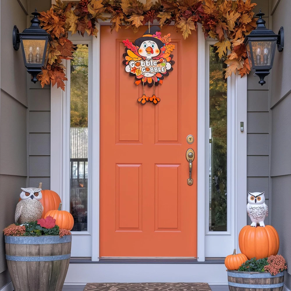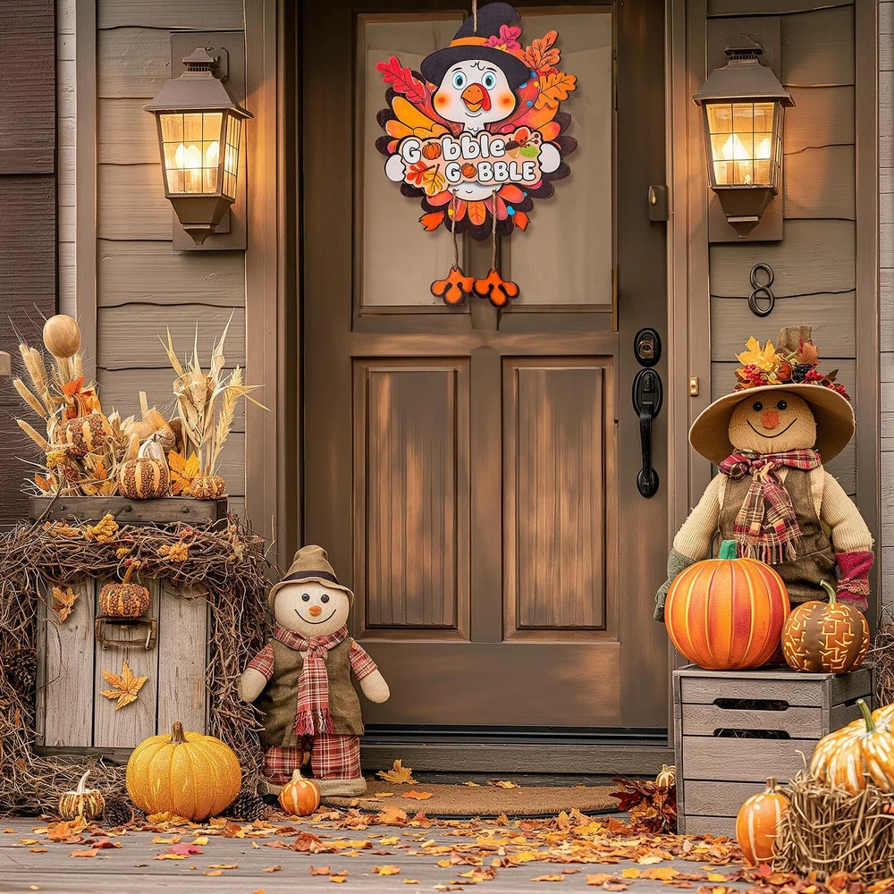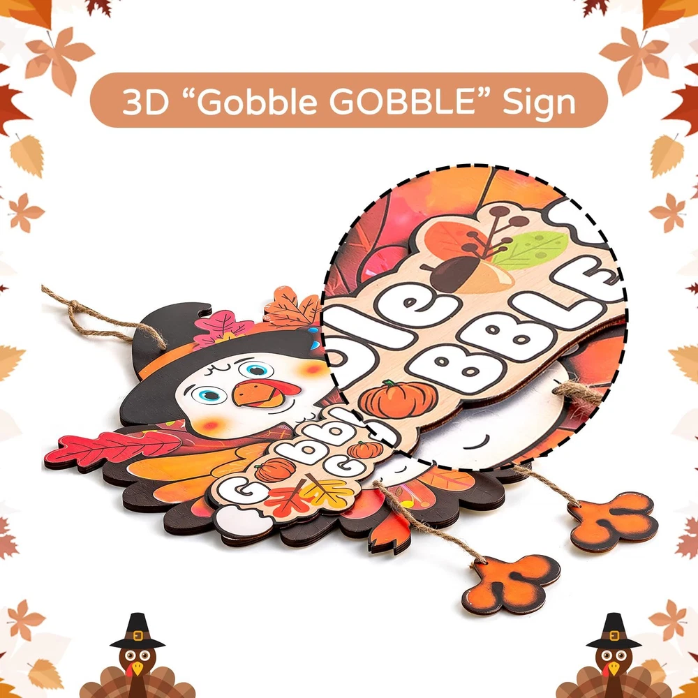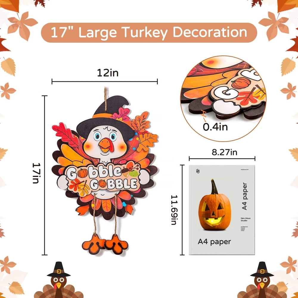 17” Large Turkey Wall Decor: 17" large-size thanksgiving decorations far exceeds the 12inch found in the market. Each fall front door decorations hanging measures 12" in width and 17" in length, with 0.4" thicknesses. Just Stand Out with a Larger gobble cute turkey outdoor sign! Thanksgiving Turkey Door Sign: Meet adorable turkeys decor, flashing blue eyes, flaunting "Gobble GOBBLE" and strutting on jute-rope legs. 3D Gobble Gobble ideas hanging turkey sign adds a touch of Thanksgiving charm to your home or office. Solid Wooden Material: Made of high-quality real wood for long-lasting use and seasonal reuse. This happy thanksgiving door sign boasts vibrant colors, a unique 3D multi-layer wood boards design, and durable craftsmanship that ensure the turkey decor will be cherished. Indoor & Outdoor Hanging: Our thanks giving wall decor can be hung on front door, wall, window, mantle, porch, yard, party, classroom, kitchen, outside, mantel, garage, fireplace, birthday or used as a table centerpiece. Not Just Give Thanks Gift: fall thankful door hanger, ideal for gifting to family, friends, neighbors, or colleagues. Perfect for welcoming kin, celebrating fall harvest or setting the feast mood. The turkey hanging decoration is a gobble-gobble amazing thanksgiving gift!