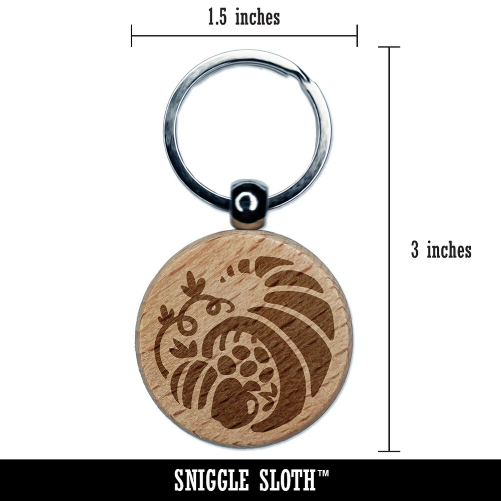 Thanksgiving Fall Cornucopia Engraved Wood Round Keychain Tag Charm