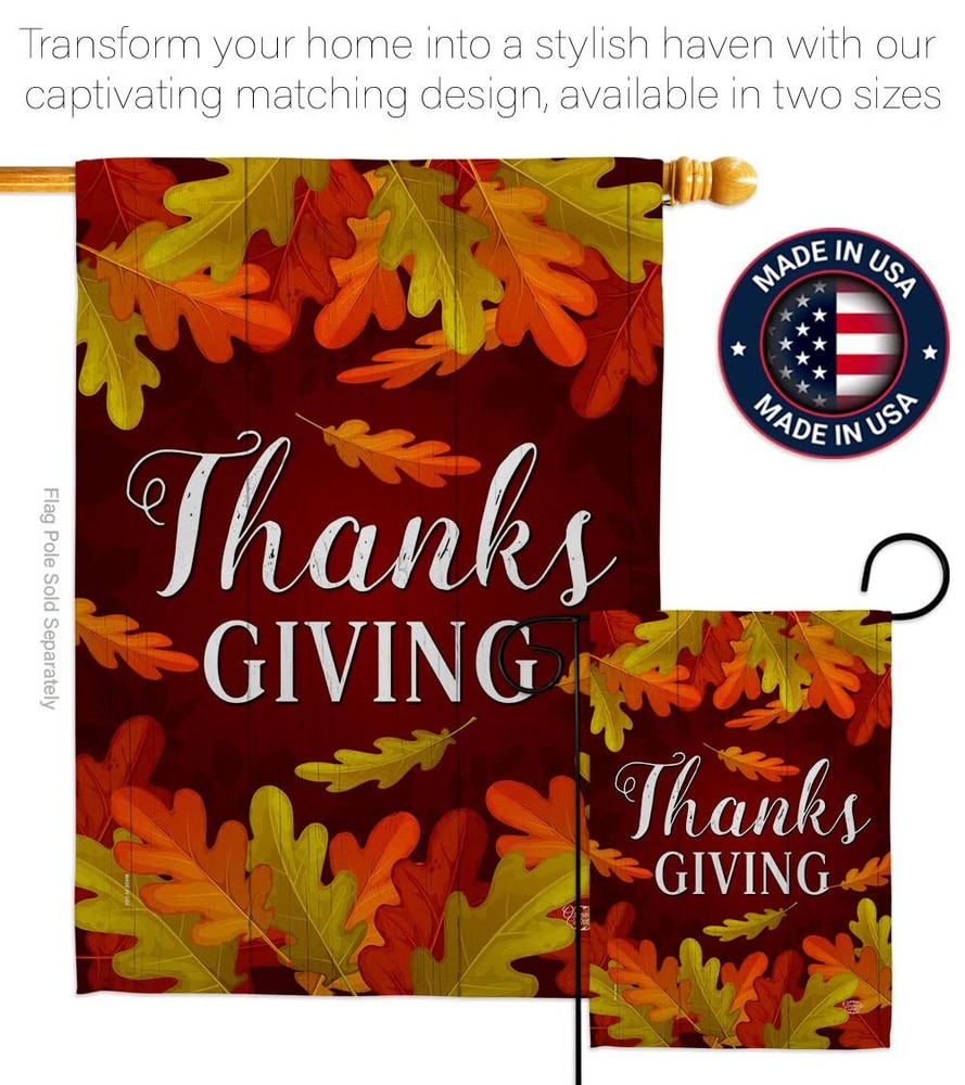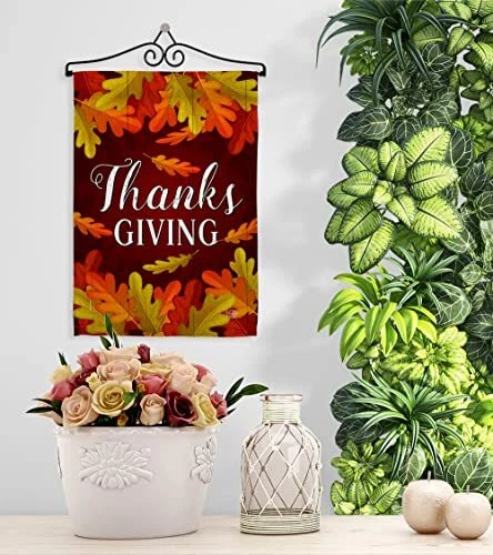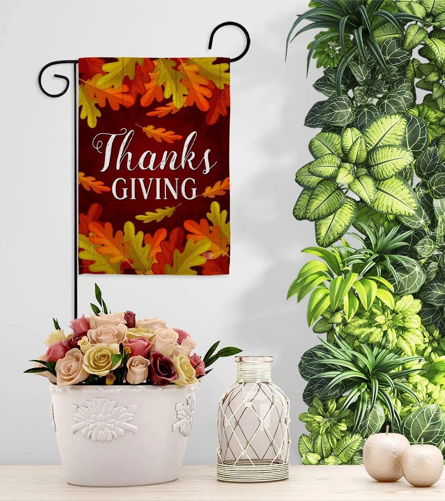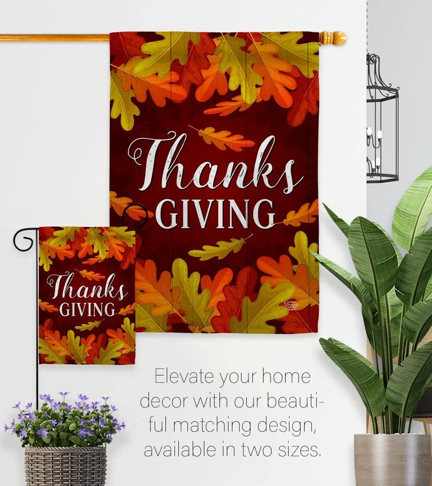 Thanksgiving Garden Flag Set Wall Hanger Fall Turkey Give Thanks Gobble Pumpk...