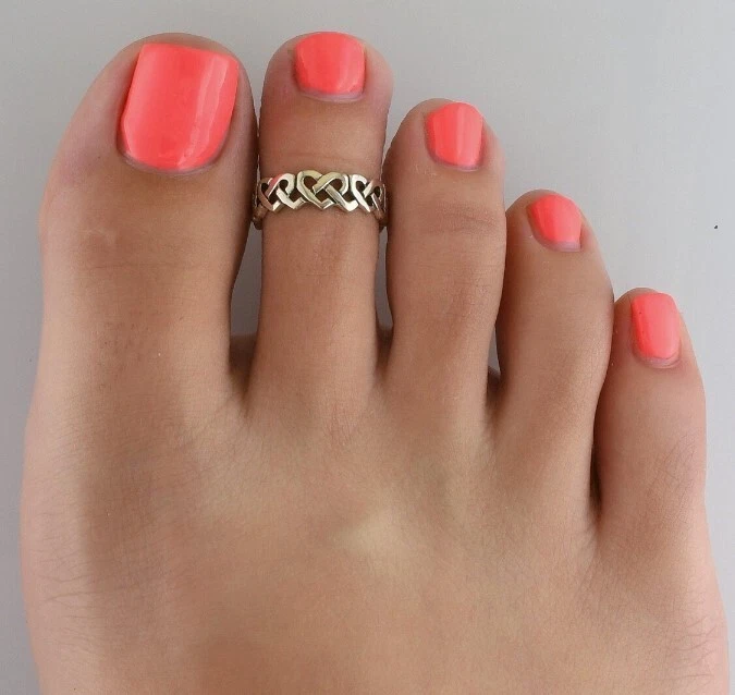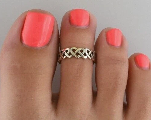 Thanksgiving Gift Women's Heart Link Adjustable Toe Ring Solid Metal 925 Silver