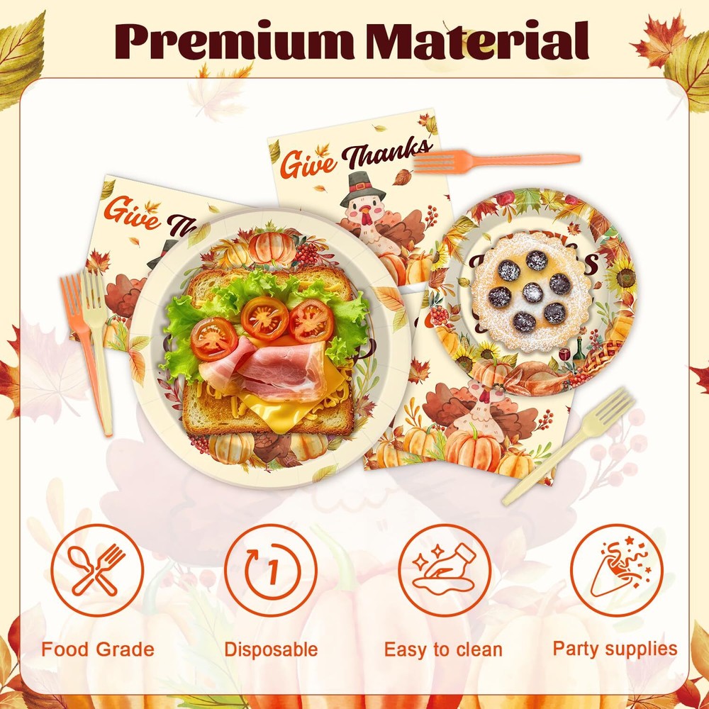 Thanksgiving Party Essentials: Premium Disposable Dinnerware Set with Plates and Napkins for a Festive Feast