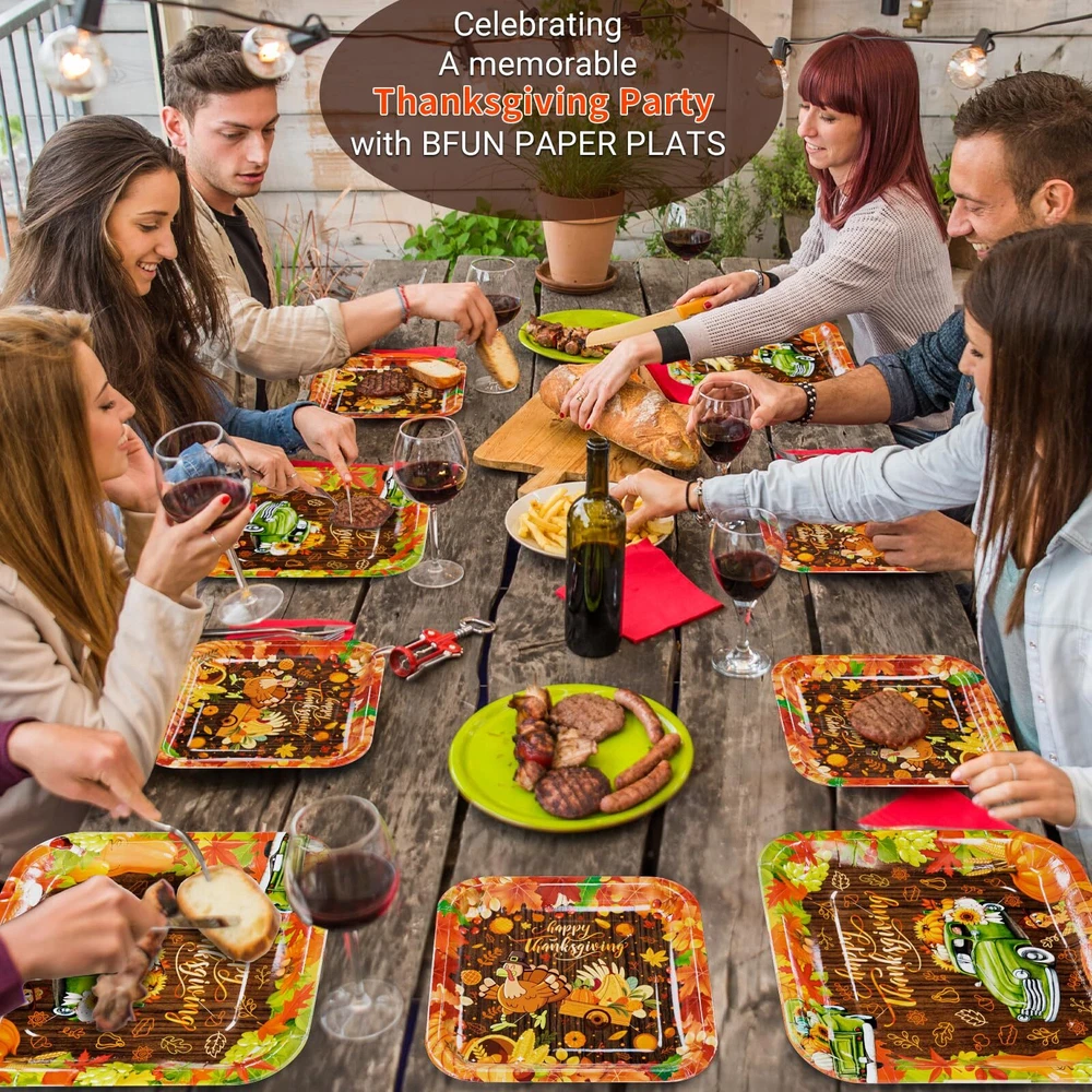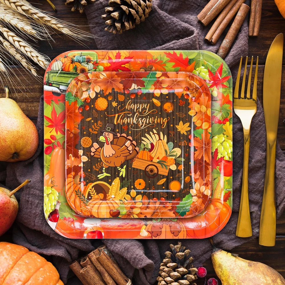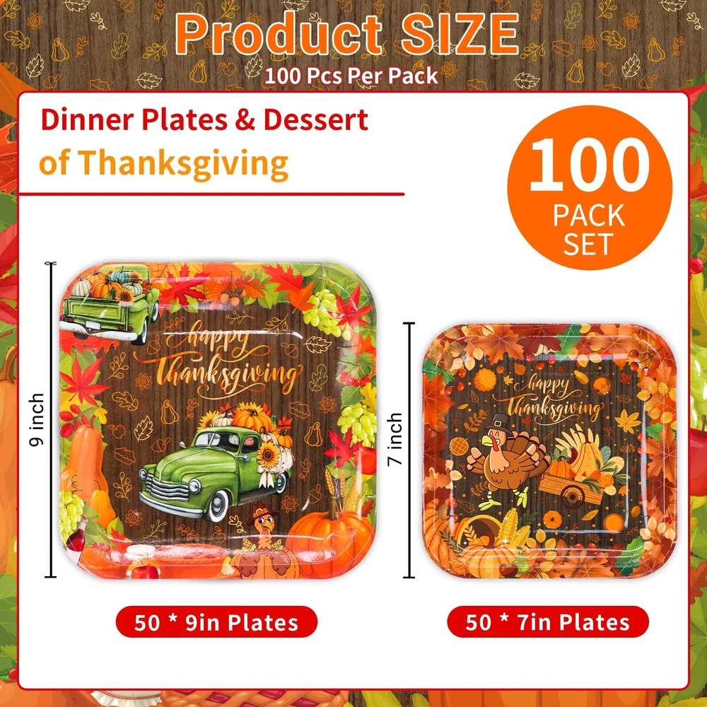 Thanksgiving Plates Party Set, 100pcs Fall Party 9” dinner plates and 7” dess...