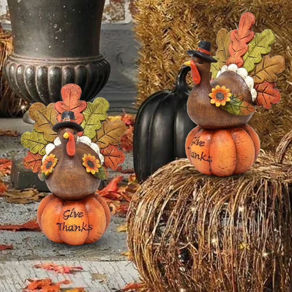 Thanksgiving Pumpkin Turkey Table Decoration Resin Give Thanks Figurine
