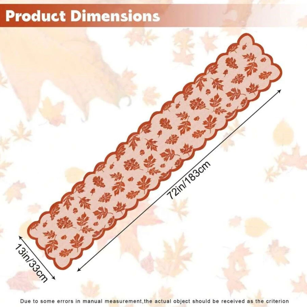 1 Piece Thanksgiving Table Runner with Maple Leaves Autumn Table Runner Maple Leaf Product Details: 1 Pack Super Value: Comden provides 1 Pack Thanksgiving table runner with a classic maple leaf pattern, chic scalloped edge, and rust red background. This makes this tablecloth look very delicate and exquisite. Soft But Durable Lace Material: This table runner is made of high-quality lace (100% polyester), soft, comfortable, and durable. With exquisite knitting, it's not easy to be damaged. Perfect Size: The size of this table runner is 13 inches by 72 inches; it is suitable for 4-6 people. We provide 2 PCS identical table runners; if you have more relatives and friends coming to your house, you can use the two together, which can meet 8–12 people at a table. Suitable For Many Occasions: This table runner is suitable for holiday or daily use. you can use it at Thanksgiving, Christmas, New Year, etc. or for daily use on dining table, coffee table, outdoor patio table, dessert table, home decoration, etc. Easy to Clean: Suitable for hand or machine washing. Use a mild detergent to dry or hang dry; no bleaching, which will not fade easily. Contact us: We can be contacted at any time through eBay messages if you have any questions, comments, or product requests. We will respond to you within 24 hours and do our best to help you out! We encourage our customers to contact us with any questions or concerns! We'd like to be sure you are completely satisfied with your purchase. Shipping Policy: Free Shipping to all buyers Shipping Time: 2 – 8 Business Days Handling Time : 3 Business Days Tracking Details: A tracking number will be provided once available from our shipping partner. Please contact us if you don't receive your item in 10-12 business days; we will check the status and try our best to resolve any problems for you. Return Policy: Domestic Returns Options: Returns Accepted After receiving the item, your buyer should contact you within 30 Days Return shipping will be paid by: Buyer Refunds will be given as Money Back or Replacement International Returns Options: Returns Not Accepted. HAPPY SHOPPING!!