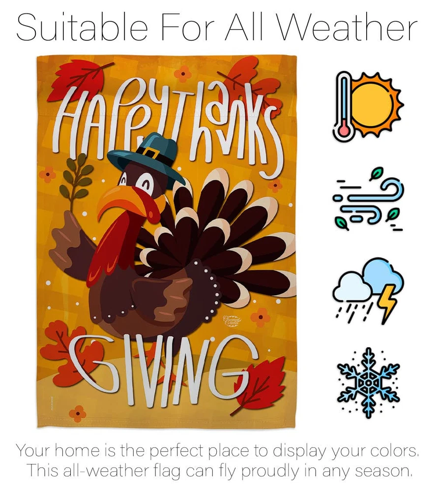 Thanksgiving Beautiful Large House Flags Pack - 2 Sets have variety of House Flags Pack for all occasions. Uniquely design for hanging indoor or outdoor use. We are committed to offering you exceptional values. Our customers enjoy displaying our House Flags Pack for longer periods. Specification: Theme: Thanksgiving Size: House Flags Pack 28" x 40" Print: Double-Sided Readable: Readable Both Sides Material: Weather Resistant 3 Layers Blockout Stitching: Double Stitched Display: Vertical Hang Type: Sleeve Artist: © Molly Will Special Features: Origin: Made In USA Package Include: 2 pc x House Flag 28" x 40" Package Decorative Flags For more than a decade, we’ve been dedicated to manufacturing flags with no comparison in quality and beautiful designs. Our flags are made with our Guard material that is soft to the touch and designs can be read correctly on the flag. A feature that our customers will love. We are committed to using eco-friendly inks that won’t leave a foot print in our environment. MPN: OC-TG-HP-192043-IP-BOAE-D-US17-OC 92043 92043