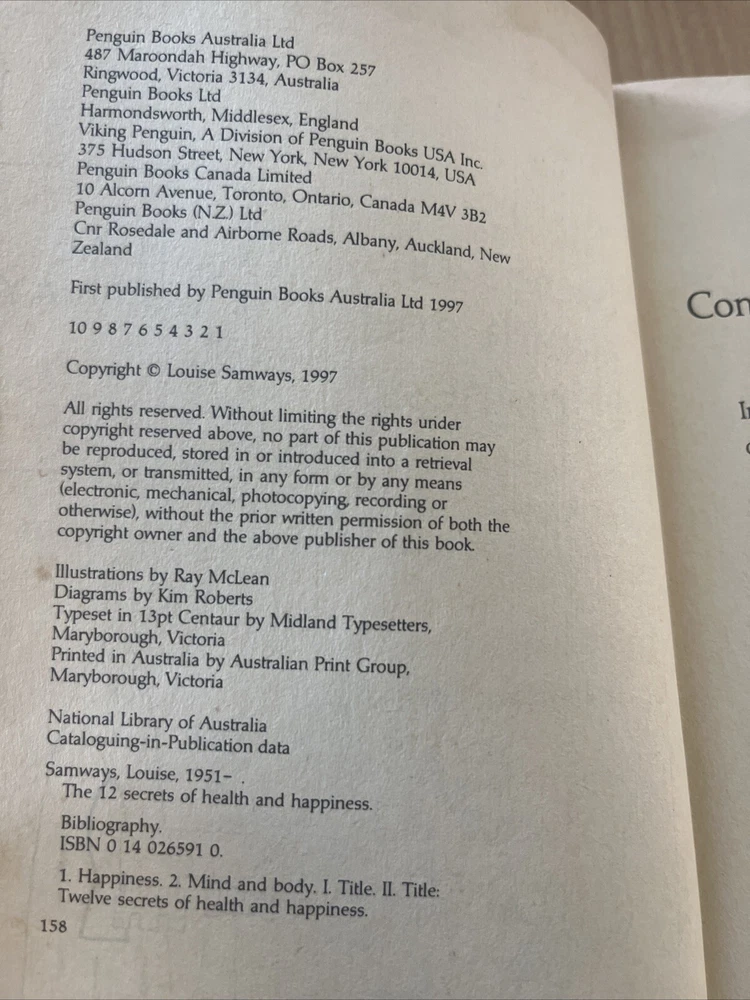 "The 12 Secrets of Health and Happiness by Louise Samways is a compelling non-fiction novel published by Penguin Books Ltd in 1998. This vintage paperback book, with a height of 198mm and a width of 128mm, delves into mind, body, and spirit topics, offering insights on self-help, health, and self-improvement. With 348 pages, this book is ideal for young adults and adults seeking practical advice on improving their overall well-being." Thank you for purchasing from A-ZCollective