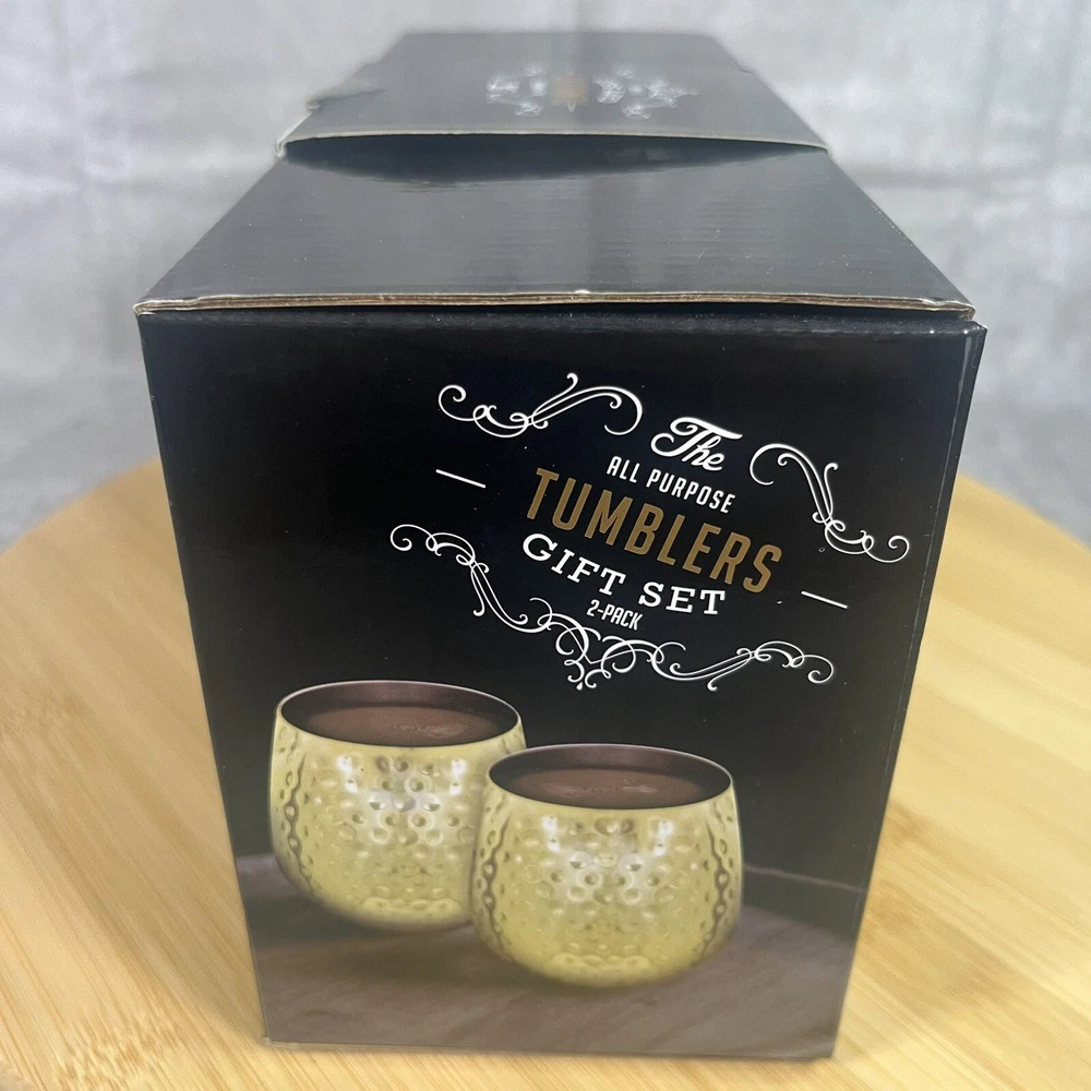 The All-Purpose Tumblers Gift Set Copper Mugs Elevate your drinking experience with this elegant glass tumbler set from Lenox. The set includes two copper mugs, perfect for all occasions. The glossy finish and hammer pattern make these tumblers a stunning addition to any collection. These 14 oz tumblers are break/chip resistant and feature a unique colonial style. They are perfect for unisex adults and come with care instructions to ensure they last a lifetime. The production technique of pottery adds to the originality of the product. This set is an original from the Diane product line and is not signed. It is suitable for California Prop 65 Warning. Hand wash only.